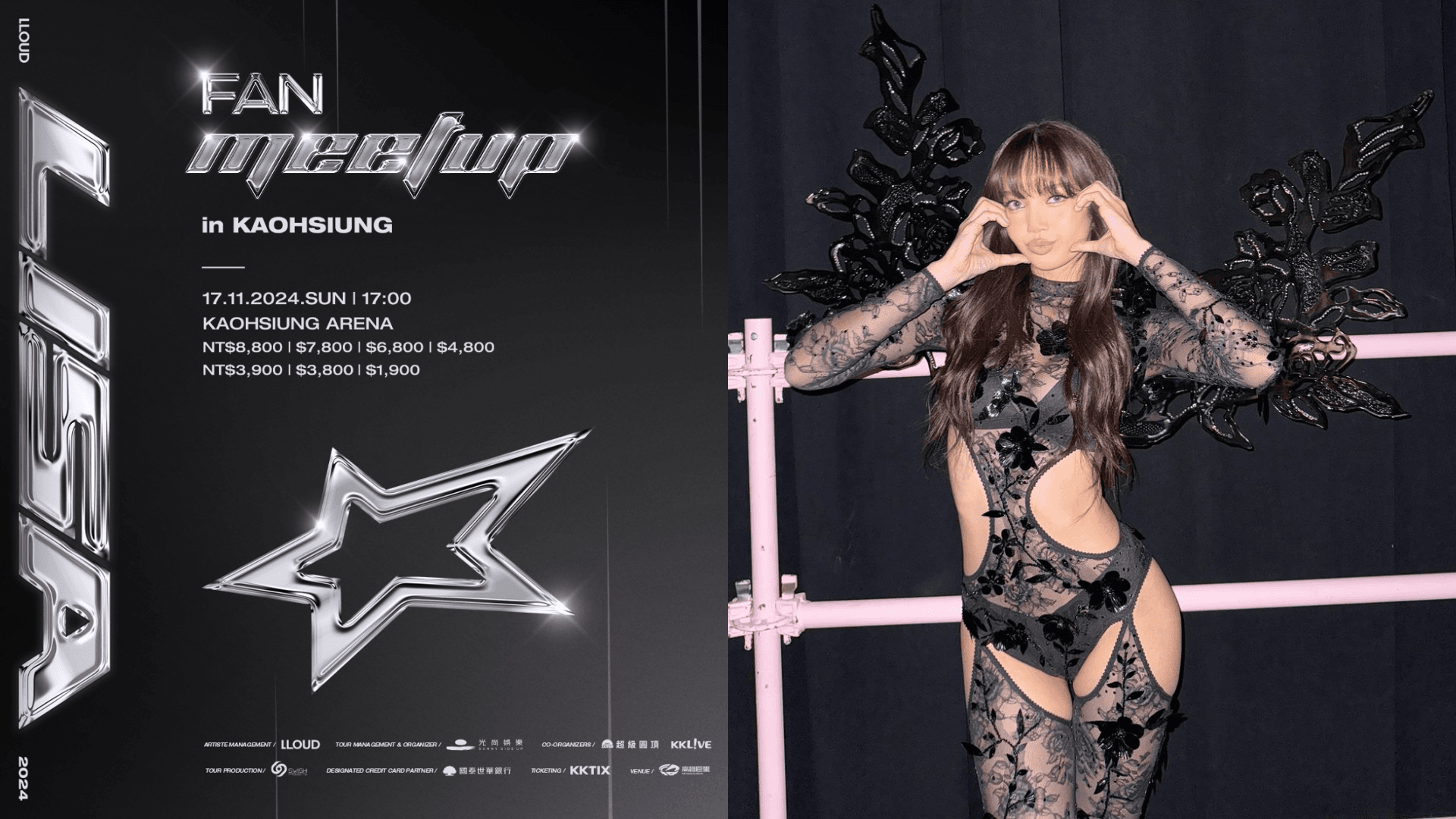 「LISA Fan Meetup in Asia 2024 - Kaohsiung」11月11日將從新加坡出發,13日曼谷、15日雅加達、17日高雄、19日香港,短短十天內將巡迴亞洲五個城市,巡演統籌及主辦單位光尚娛樂,協辦單位超級圓頂與KKLIVE也正式公告票價為8,800元、7,800元、6,800元、4,800元、3,900元(非輪椅席)、3,800元、1,900元(輪椅席),售票日定於10月24日下午3點為國泰世華CUBE卡友優先購、10月25日下午3點在KKTIX售票系統正式開賣。