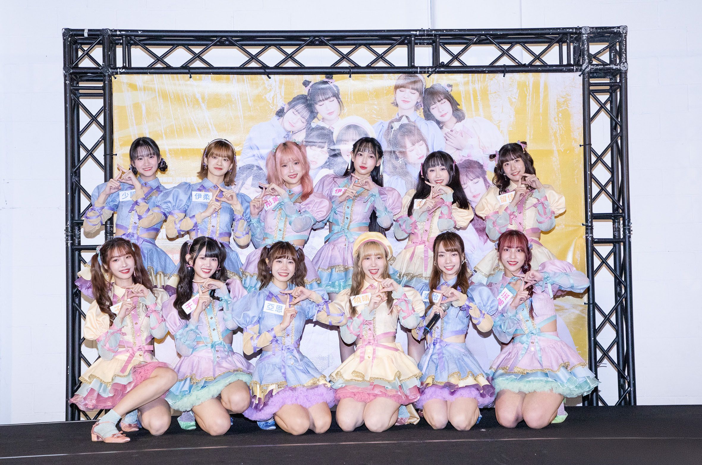 易沄(右)設計的敲頭舞,粉絲十分喜歡。(好言娛樂提供)握手會現場也有成員準備笑話、唱歌跳舞、土味情話撩粉絲,各出奇招圈粉,蔡亞恩分享:「剛有粉絲問我可不可以釣他?我說那我們猜拳好不好,我一定會出剪刀,因為你就是我的『全部』(拳),結果反而讓對方更緊張。」她透露另外有收到害羞的粉絲邊哭著邊握手邊真情告白:「謝謝妳給我力量。」令她相當相當感動。