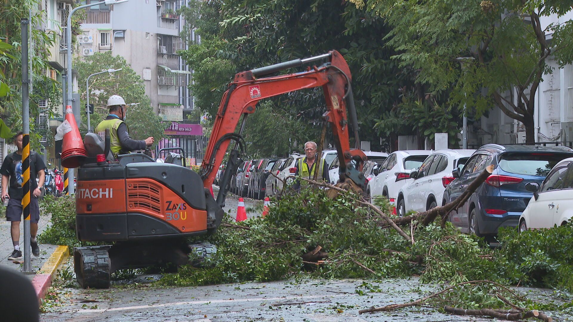 康芮帶來的強風豪雨在台北市造成不少災情,其中信義區就有不少路段的人行道被倒塌路樹占滿,民生社區三民路段更有巨型樹木橫倒,整個雙向4縣道完全無法通行,導致公車無法通行,許多用路人也只能繞道通行,上班尖峰交通一度大打結。