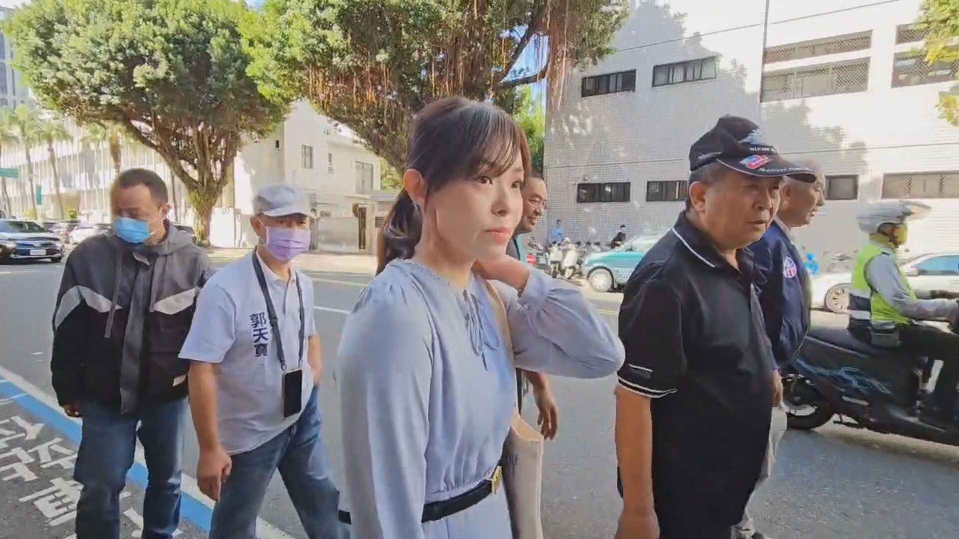 新竹市長高虹安日前因在任立委期間,涉嫌詐領助理費案而被停職,今(4日)高等法院開庭,再傳喚高虹安及4名助理,庭外一早聚集抗議群眾高喊「重判高虹安」,而一旁小草則聲援高喊「綠色迫害」。高虹安在一審宣判後神隱4個月首次現身,今(4日)穿著藍色洋裝抵達高院,面對媒體提問,僅微笑回應「謝謝」。
