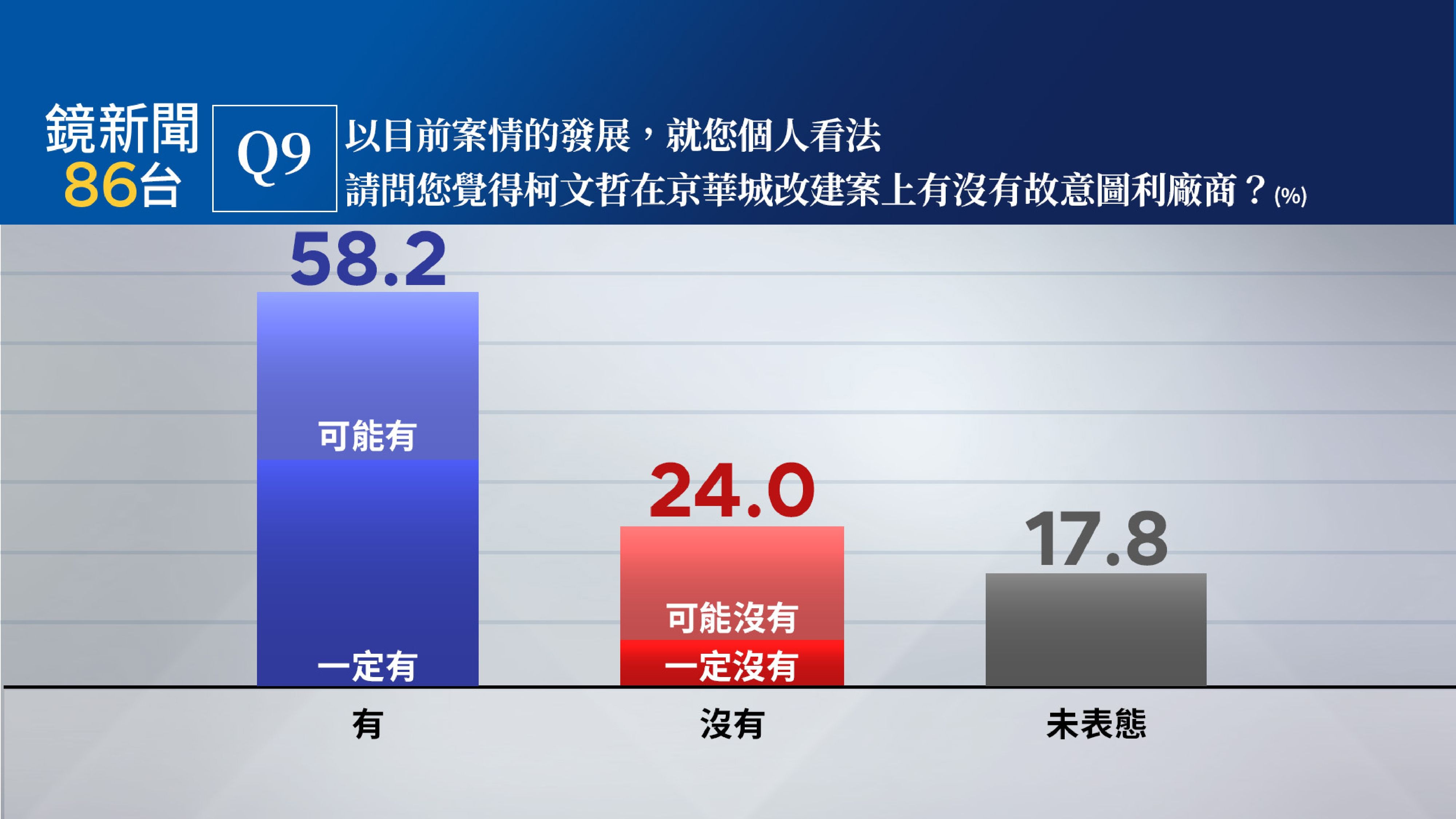 柯再延押二月!圖利京華城? 58.2%民眾認為有、24.0%認為沒有