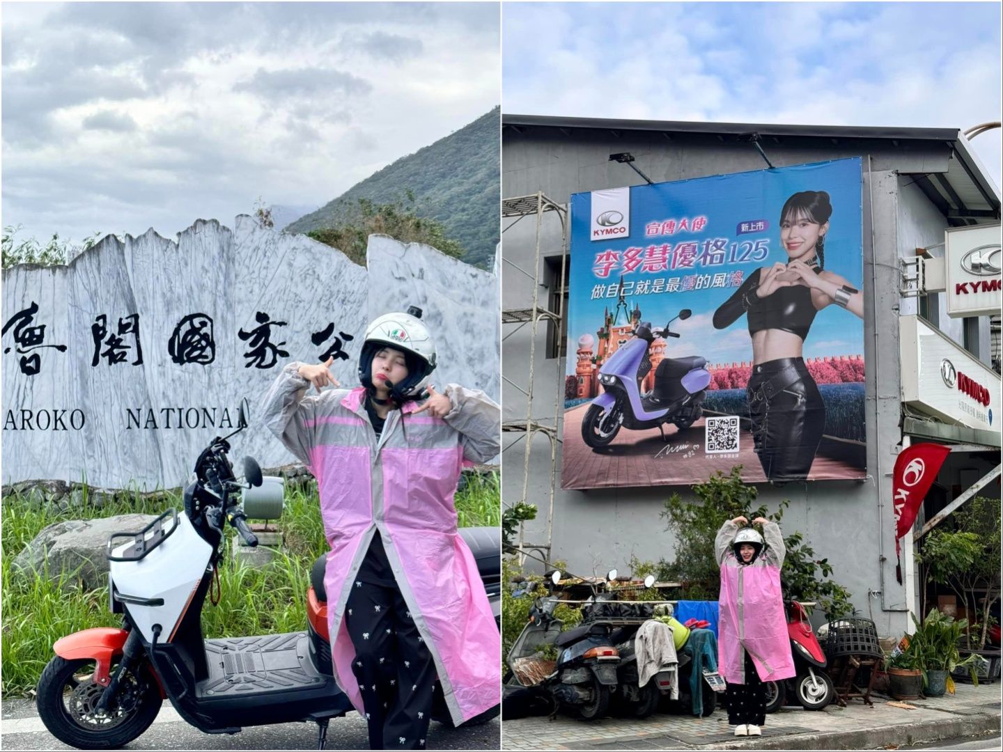 李多慧6日在社群更新旅程進度,表示已平安抵達花蓮,但因太魯閣封路沒去成,她第1個的行程是到機車行換機油,店外牆上還掛著李多慧代言機車的超大型廣告,她開心與「自己」拍照,也曬出與車行老闆合照,讓網友直喊羨慕,「這老闆是全台灣最幸運的了」、「改名花蓮李多慧機車行」、「換機油應該是免費」。