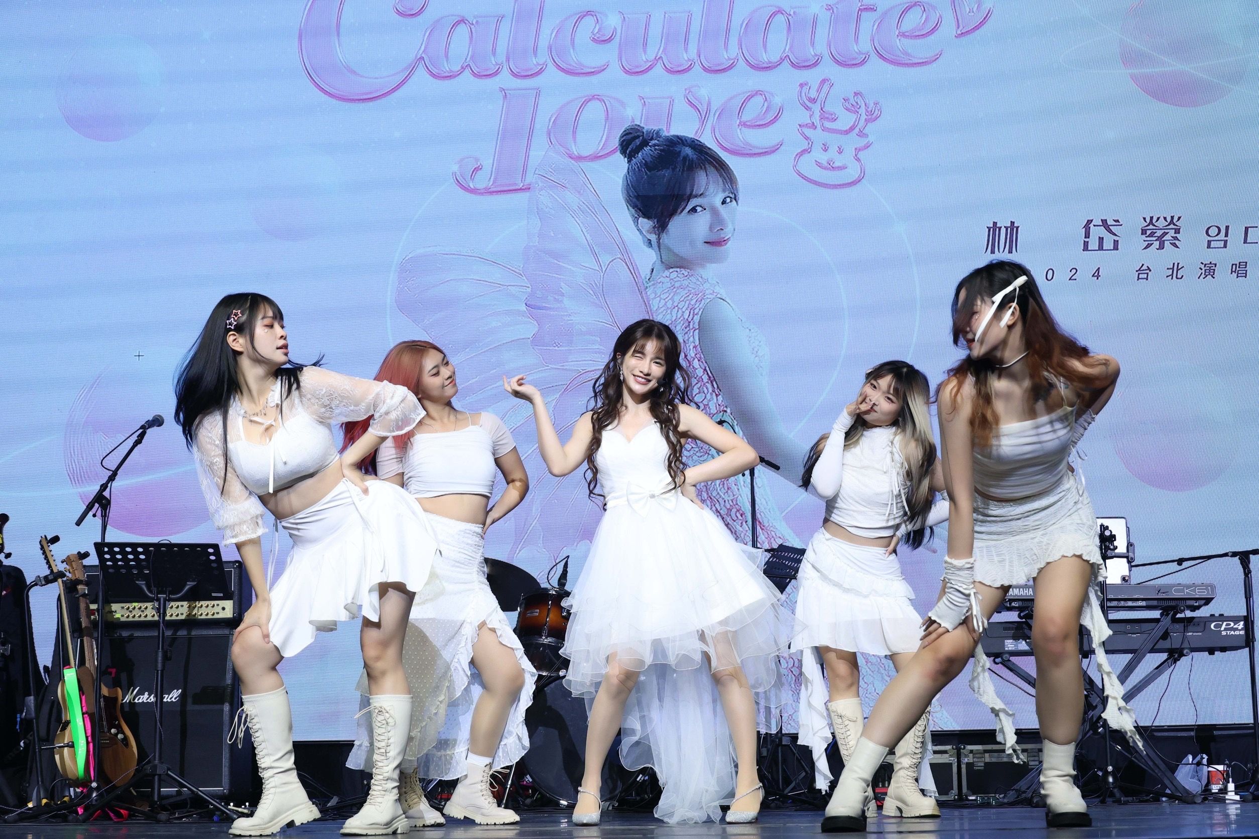 「零死角女神」林岱縈今(9日)舉辦出道11年人生首場個人演唱會,吸引超過600人到場,一開場,林岱縈以〈差不多姑娘〉〈跳進來〉、〈Di da di〉及〈燕尾蝶〉勁歌金曲連發,掀起熱鬧氣氛。她也演唱數首偶像孫燕姿的歌,她說,「我人生買的第一張CD就是孫燕姿的專輯。」接著她也以一身雪白甜美仙女造型,搭配四名舞者演唱單曲〈CalculateLove〉時,台下粉絲跟著一起擺動合唱,掀起全場高潮。