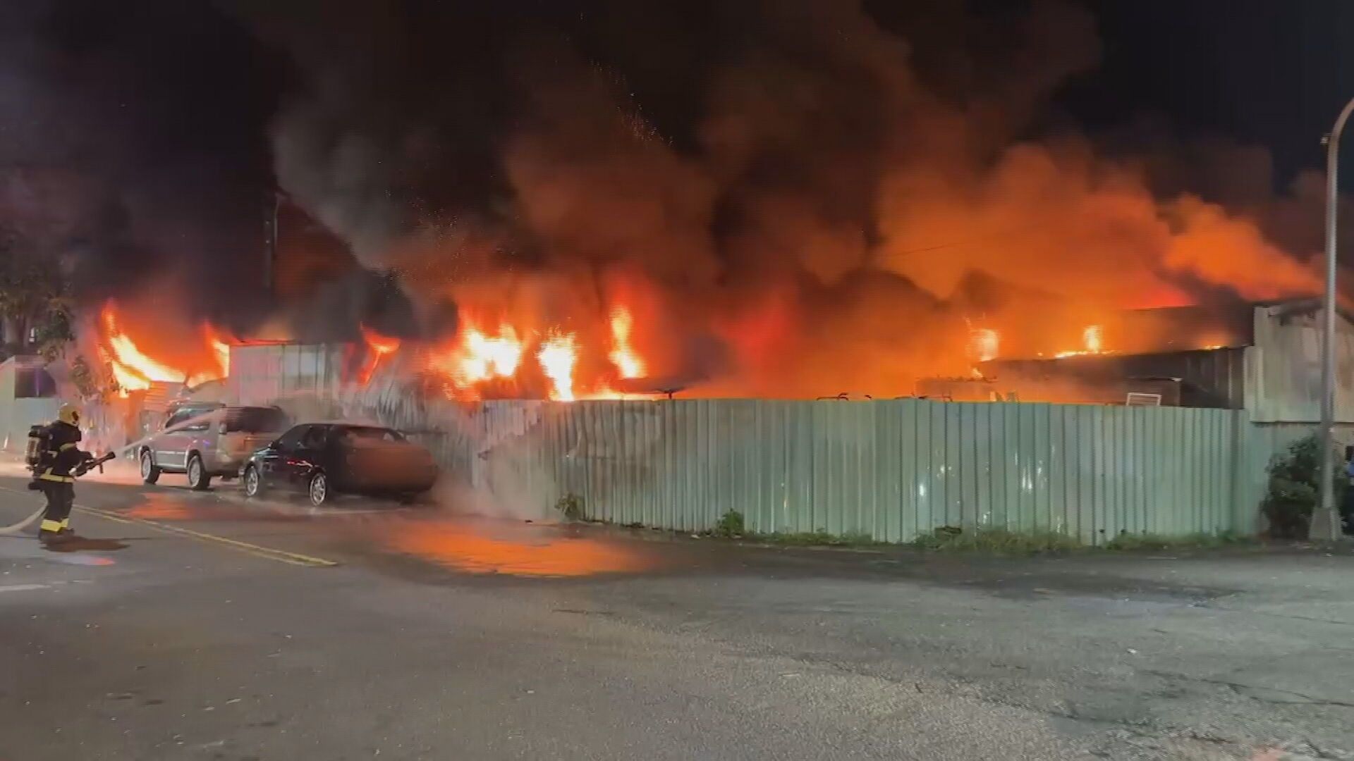 高雄市鼓山區位在厚德路上的清潔隊停車場,11日凌晨1點多傳出火警,火舌不斷從鐵皮建築竄出,屋內的雜物全都陷入火海,停在一旁的機車和垃圾車也遭到波及,被燒到只剩下骨架,現場不斷傳出爆炸聲,火勢相當的猛烈。