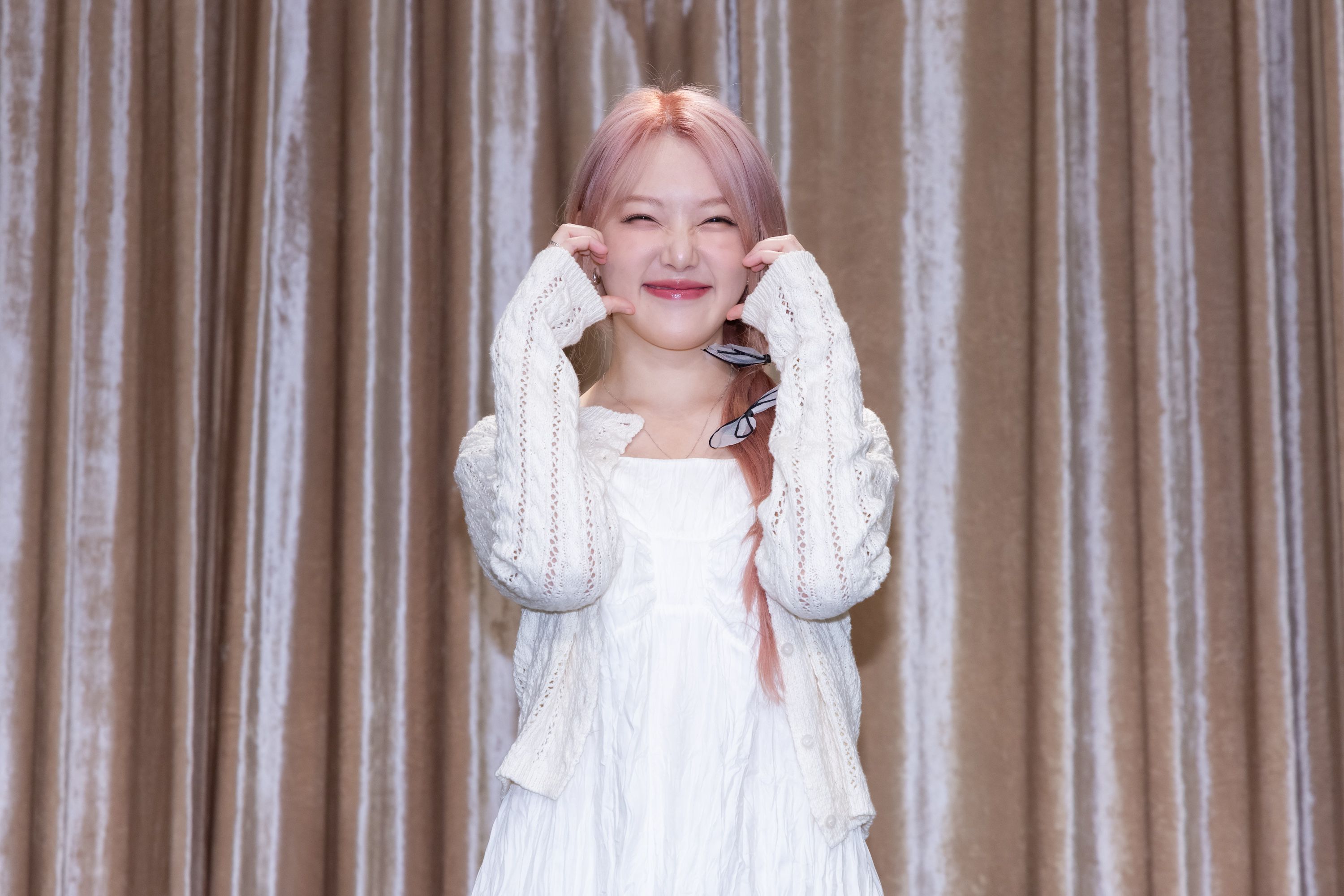 Yerin透露希望有機會能來台演戲,比出「聯絡我」的pose。(COME ON JKSSP提供)