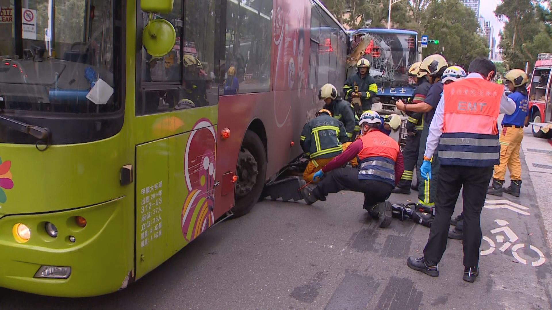 台北市忠孝東路、鎮江街口,今(17日)上午九點多發生一起重大車禍,一輛公車在右轉時減速禮讓行人,卻沒想到後方也要轉彎的公車,在沒減速的情況下撞了上來,導致前方公車失控撞上正在過馬路的一對夫妻,其中妻子被輾過捲入車底,公車急煞也造成車上15人受傷,警消獲報後抵達現場,趕緊將傷患送醫,並且抬起公車搶救傷者,但送醫後女行人還是因為傷重,宣告不治。
