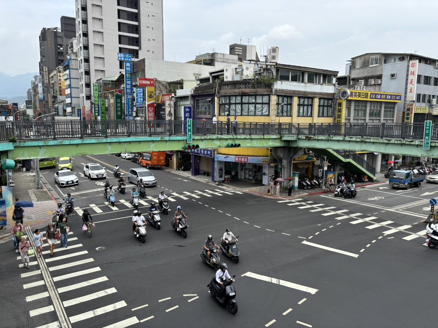 市府日前說明,天橋對市容的天際線景觀造成視線阻礙,樓梯墩柱占據人行道空間,不利嬰兒車和輪椅族通行,且使用年限40年將至,原定10月25日進行拆除準備工作、12月3日完成,民團發起連署抗議才延遲拆除。