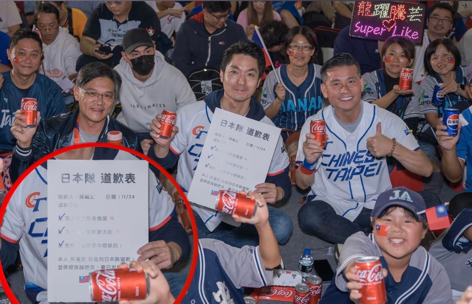 台北市長蔣萬安24日冠軍賽當晚,也自製道歉表,但他自認對台灣隊有信心,因此向對手日本隊道歉,並開心持道歉表和球迷合照PO臉書,多數網友留言同樂,也有人提醒:「幕僚該打屁股了……道歉表不是這樣用的」,不少球迷對此感到不悅,民進黨議員顏若芳便抨擊:「蹭流量不成,反而丟臉到全世界!」呼籲應儘速道歉,民進黨議員簡舒培建議,有些事情網友可以做,但蔣萬安別忘了自己是台北市長。