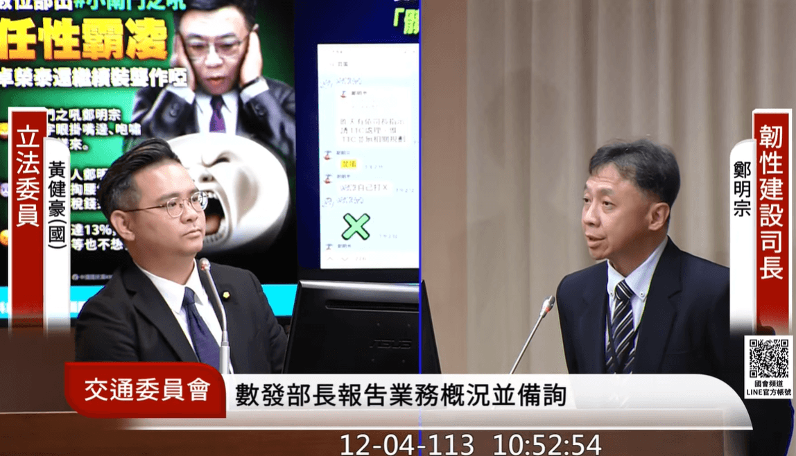 國民黨昨日召開「卓榮泰對數位部霸凌裝聾作啞 韌性建設變任性霸凌」記者會,揭露鄭明宗疑似霸凌下屬,多次咆哮、辱罵下屬,甚至要求下屬自掏腰包提供點心,鄭明宗今日出席立法院交通委員會,國民黨立委黃健豪質詢時請他說明,爆料內容是否屬實,還是有涉及到內部鬥爭?