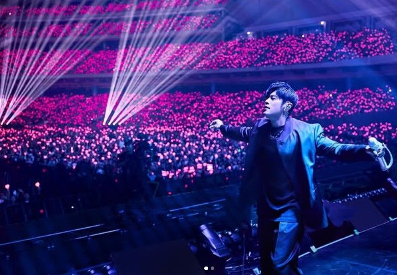 周杰倫睽違7年在台灣開唱,且成為在大巨蛋開個唱的第一人,昨日首場演出唱了3.5小時,有近3.8萬名歌迷一同嗨爆大巨蛋,不少演藝圈星友也送上花籃祝賀,甚至到場支持,周董今日在IG發文曝感想,直呼:「哇嗚,太嗨了,7年沒回來唱,這次開心的唱了好久好久。」
