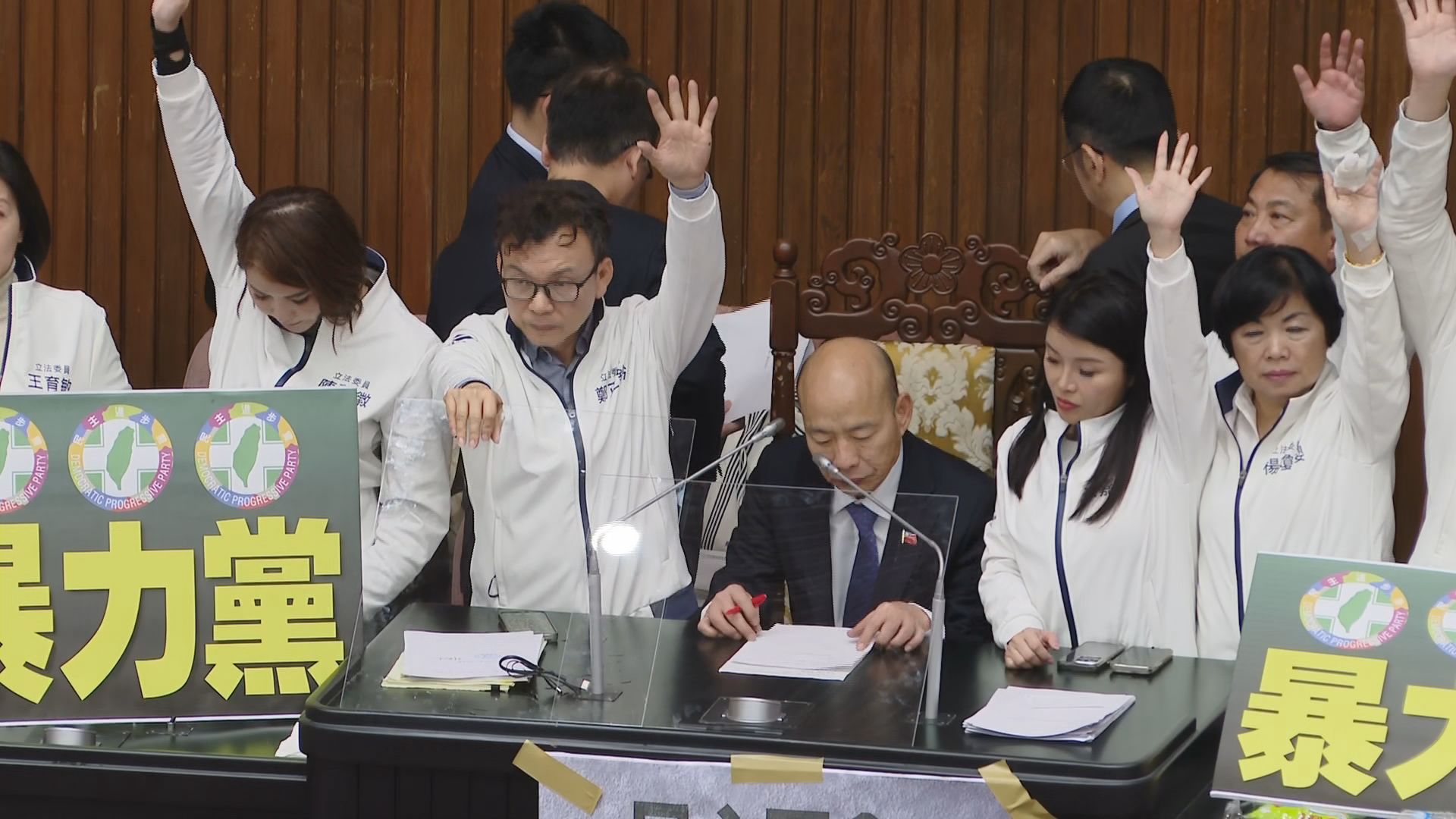 不料韓國瑜隨即處理國民黨團提議的停止討論,民進黨立委敲桌抗議「我們要發言」,表決時,民眾黨團8席立委也舉手贊成停止討論,面對民進黨立委叫囂,總召黃國昌看起來相當輕鬆愉悅。