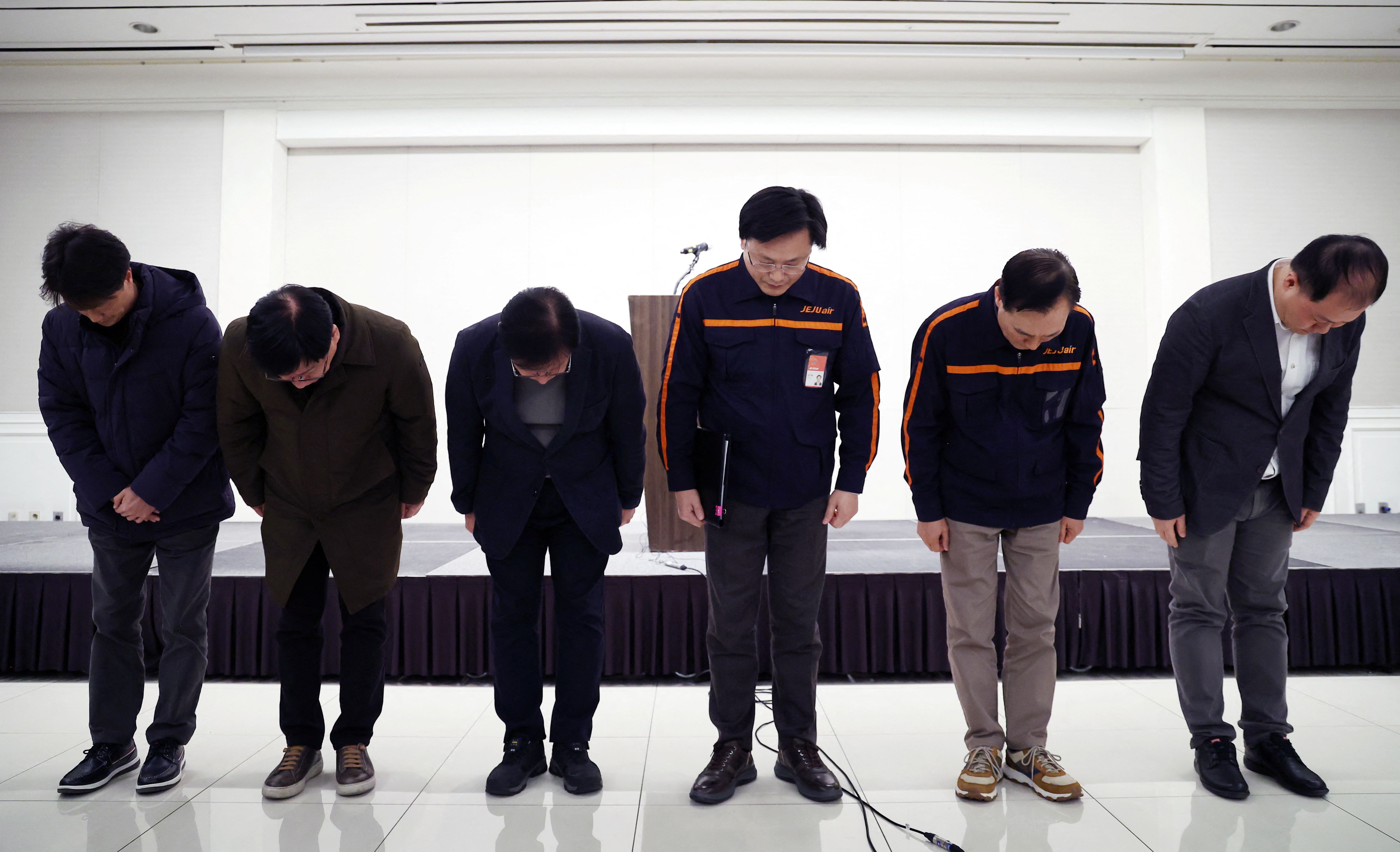 這也是濟州航空成立以來首度重大空難,稍早CEO金利培率領高層出面鞠躬道歉,並表示不清楚事故原因,還有待正式調查公告,同時公司也已成立事故專案小組應對,也將盡力支持死者家屬。金利培在5分鐘內唸完聲明後就火速離場。