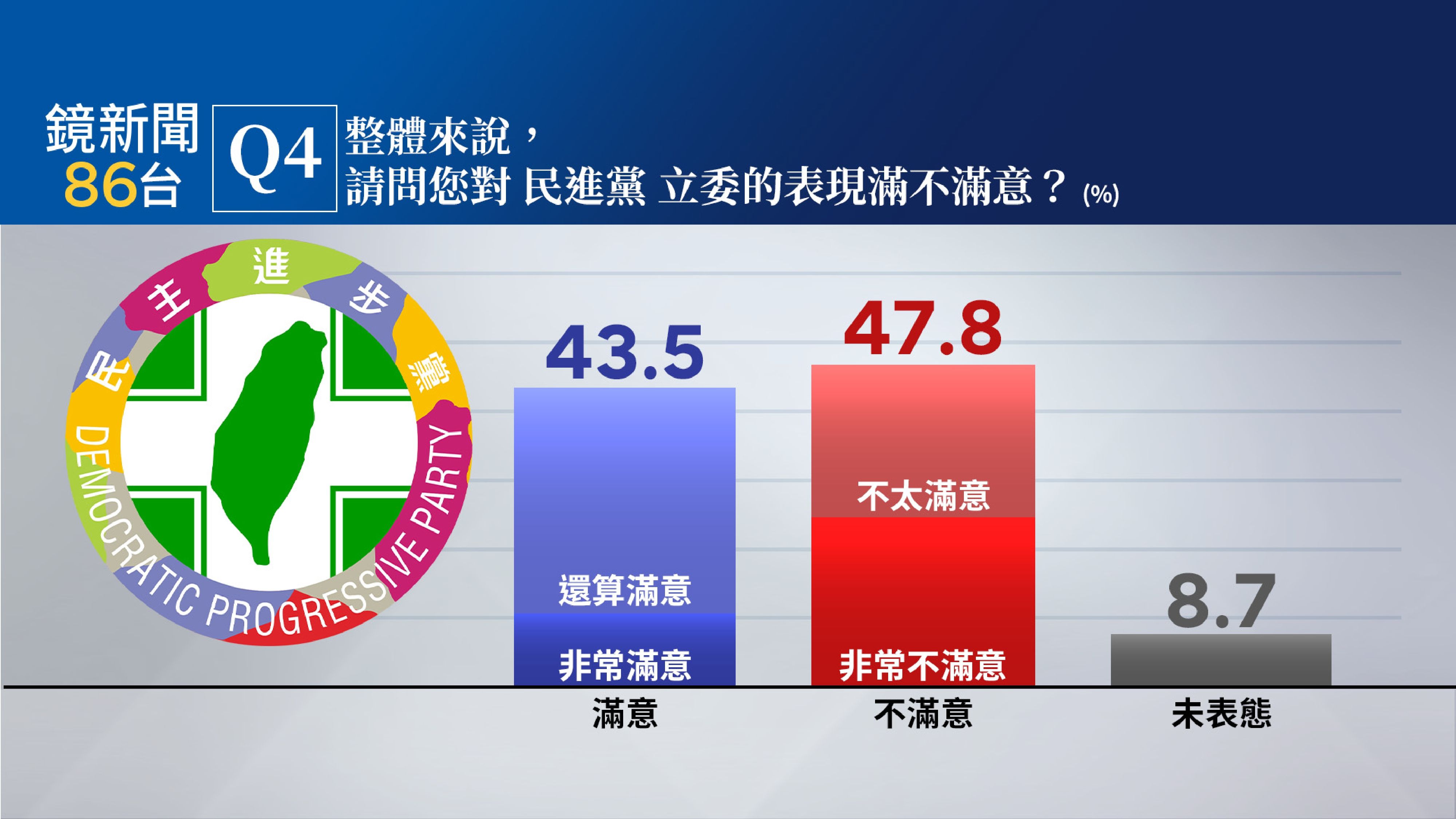 國會立委滿意度 綠維持第一43.5%、藍略減為33.1%、白墊底29.0%
