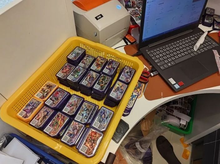 警方調查,50歲羅男原本是傳統市場菜販,夥同妹妹、弟弟及弟媳等人從2022年開始,先向中國仿冒商購買寶可夢Ga-Olé盜版卡販售,發現獲利豐厚就自行製作,卡片模具、卡片與貼紙一應俱全,製作成本僅5元,在蝦皮平台卻以每張45元販售,還能指定購買特定卡牌,且能夠在正版遊戲機台使用。