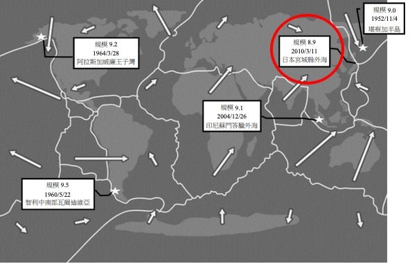 自然考科第15題問及全球全5大規模的地震,包含1960年智利中南部瓦爾迪維亞規模9.5、1964年阿拉斯加威廉王子灣規模9.2、2004年印尼蘇門答臘外海9.1、「2010年」日本宮城縣外海規模8.9、1952年堪察加半島規模9.0,並要求考生作答5大地震同屬哪種類型的板塊邊界、構造區域,不過日本311規模8.9地震應為2011年發生。