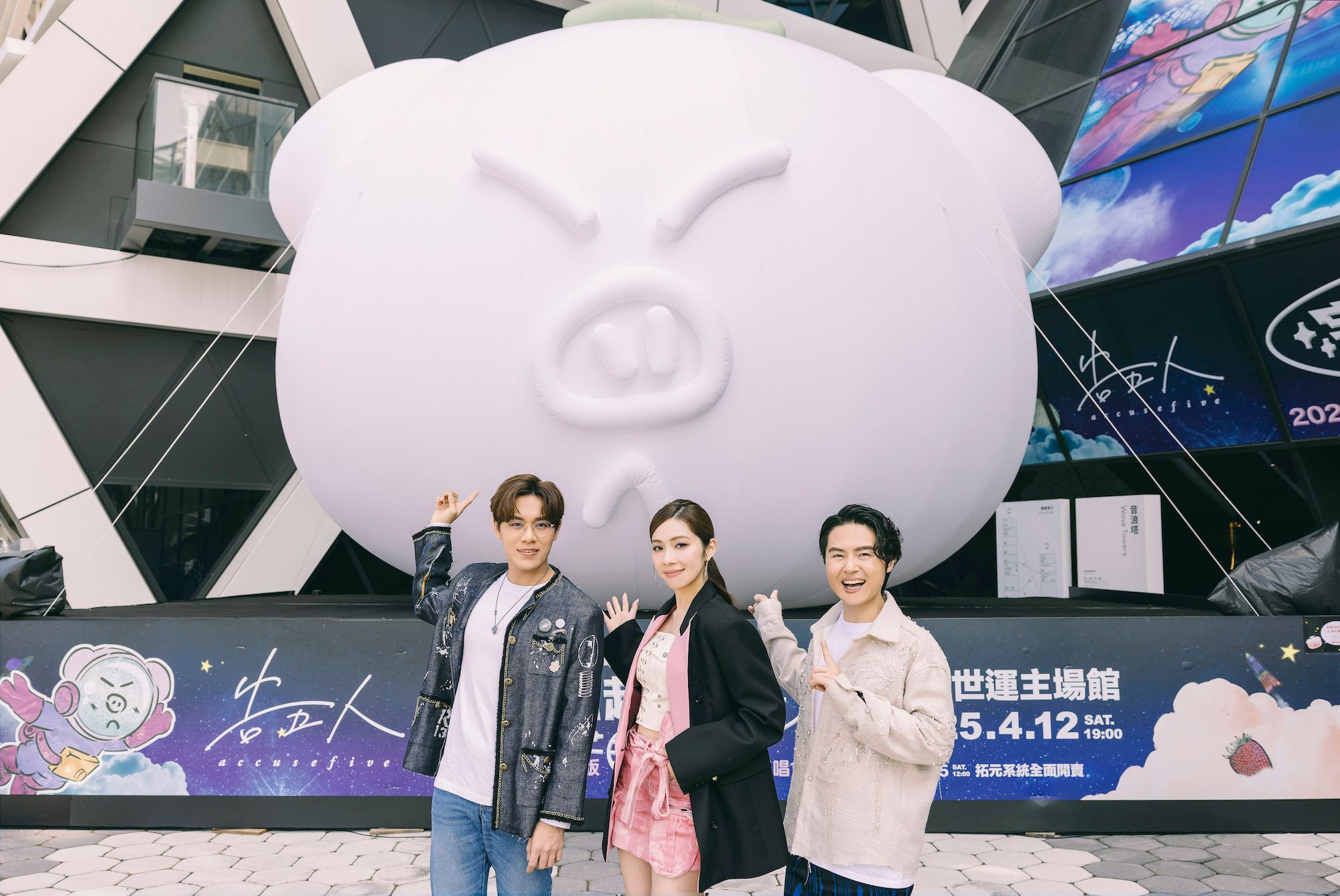 告五人將於4月12日在高雄世運主場館開唱,2025開年便強勢登陸港都,策劃「豬光寶氣」Magic光雕裝置藝術寵粉,今(25日)更以「2025 Kaohsiung Wonderland 高雄冬日遊樂園」高雄燈會代言人之姿現身開幕活動,吸引破萬人潮到訪,並與吉伊卡哇(Chiikawa)重磅合體,告五人表示:「祝大家新年快樂,新春期間歡迎海內外歌迷都來高雄看吉伊卡哇、告五豬光雕裝置,一起討吉利!」