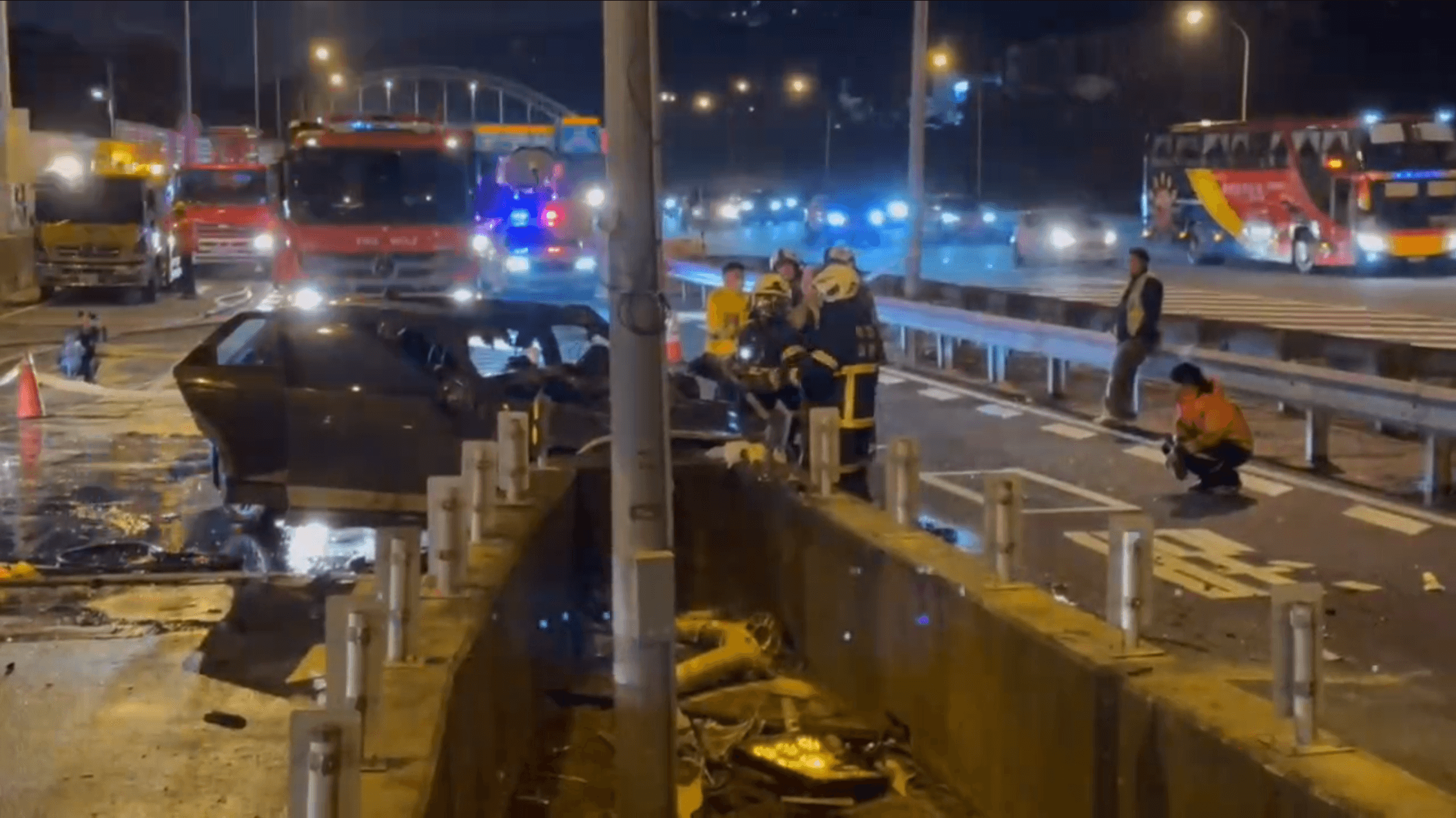 對於外界懷疑道路設計不良導致事故頻傳,高速公路局說明,依事發地點發生的5件自撞事故資料分析顯示,事故原因主要為使用行車輔助系統、疲勞駕駛、分心駕駛等,都屬於用路人操作或個人身心狀態所導致之交通事故。而為加強提醒與警示,高公局已陸續增加交通工程設施,包括增設路面速限標字、交通桿、導標、護欄設反光浪板、跳動路面減速標線、及去年10月28日再增設視覺化減速標線,以強化警示效果及促使用路人依循車道標線行駛。