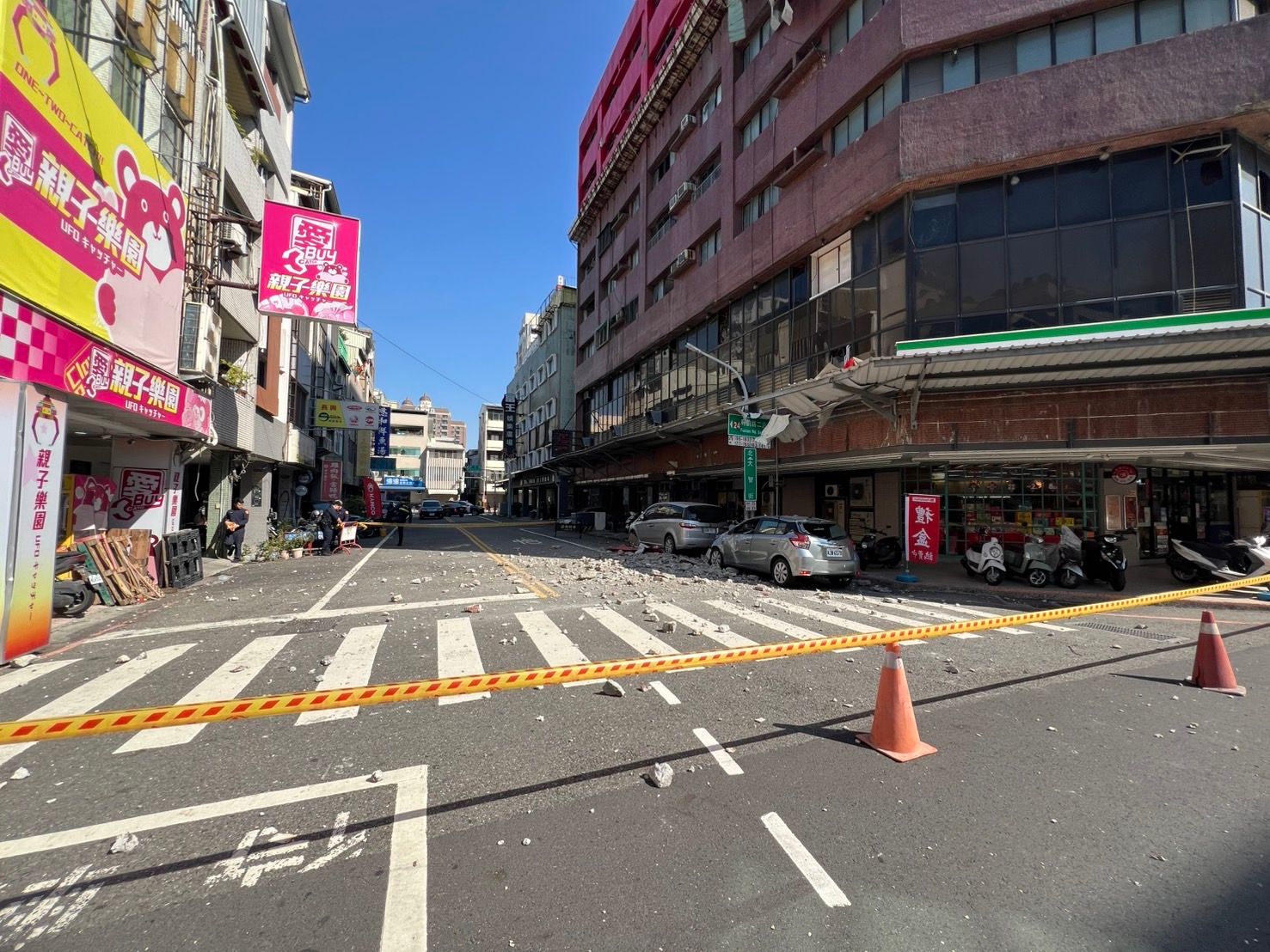 警方指出,地震發生後,中正派出所獲報在府前路2段與大智街口的大樓外牆磁磚掉落,巡邏員警立即到場管制,除以護欄、警戒線圈圍路旁危險區域外,並於現場管制人車安全通行。