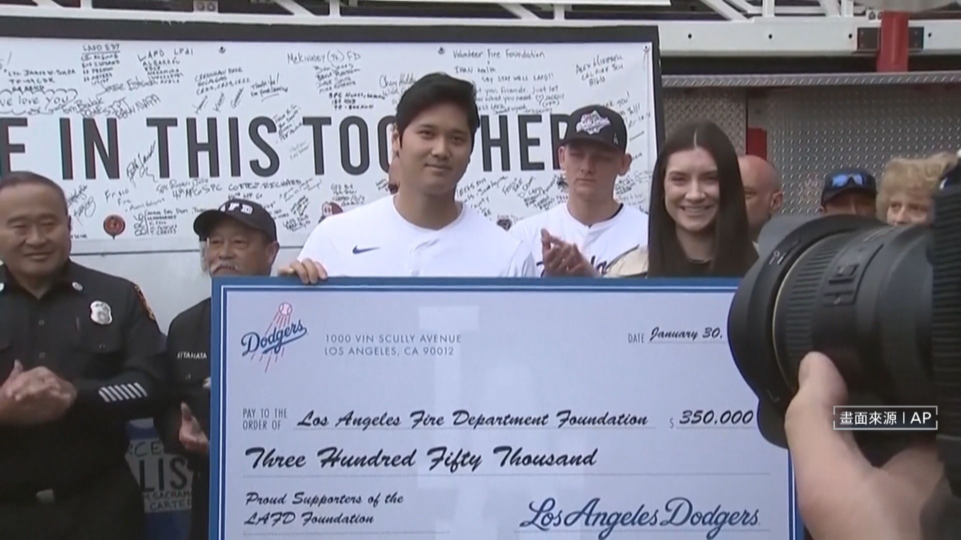 畫面上可以看到,大谷身穿道奇隊球衣,親自登上大型消防雲梯車駕駛,事實上,他先前就已經以個人名義捐出50萬美元來援助災民,這次和隊友參與活動,一起造訪位於洛杉磯西側的「太平洋斷崖」的消防局第69分局,來感謝打火英雄們不眠不休的付出。