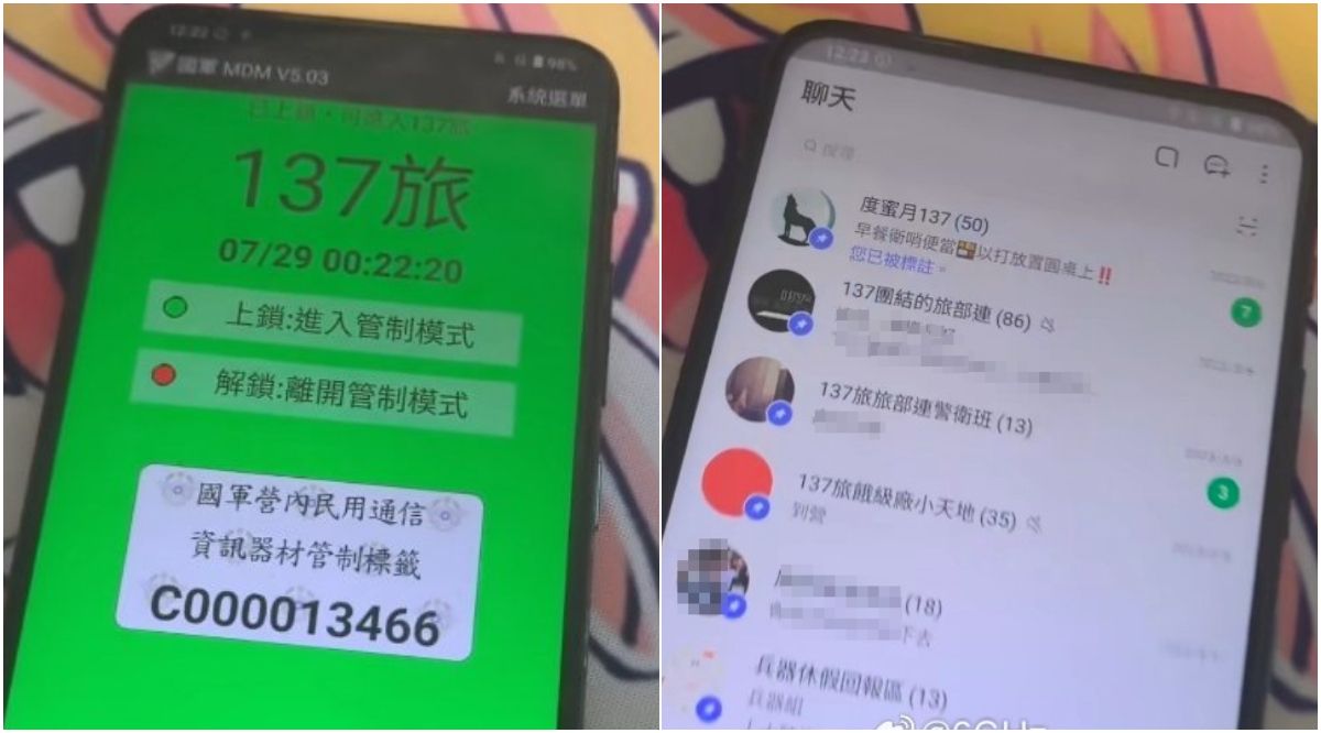 中國社群今(12日)瘋傳台灣國軍手機落入中國民眾手裡,一名買家分享購入的二手機中,不僅有國軍的行動裝置管理(Mobile Device Management, MDM)機制,通訊軟體中還有許多「137旅」等聊天群組。對此,陸軍第八軍團指揮部稍早也透過新聞稿回應,證實137旅前吳姓士兵曾不慎遺失手機,初步審定,網路流傳內容皆未有機敏資訊。
