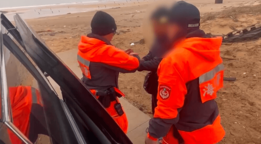 解放軍東部戰區今(1日)在台灣周邊展開聯合演訓,第9岸巡隊第一機動巡邏站人員於6時49分執行清晨巡邏時,在金門寒舍花前岸際查獲鄭姓中國籍男子乘坐充氣式橡皮艇利用划槳企圖偷渡入境,當場逮捕進行調查。