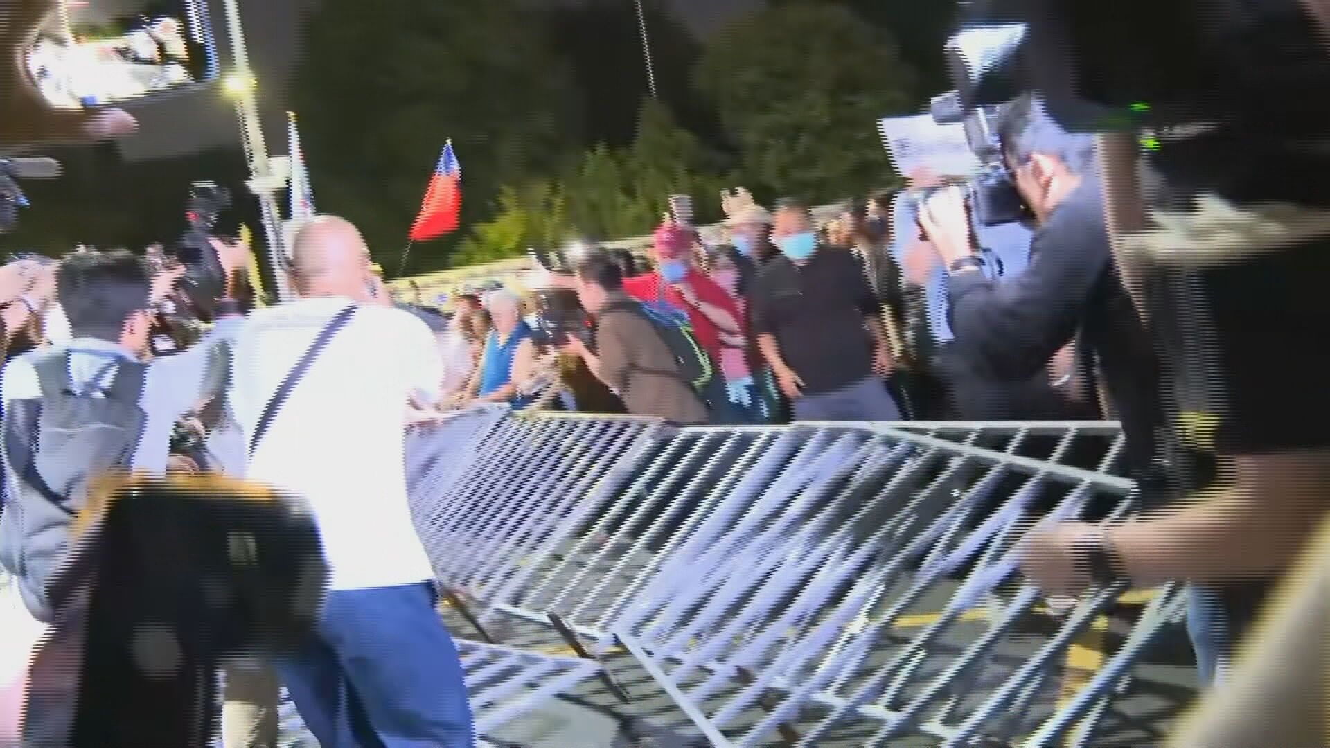國民黨支持者今(17日)晚間聚集在台北地檢署外,立委謝龍介帶領支持者往前衝,質問「人民是頭家,為什麼把頭家關在外面」,之後民眾推倒拒馬進入管制區,現場一片混亂。