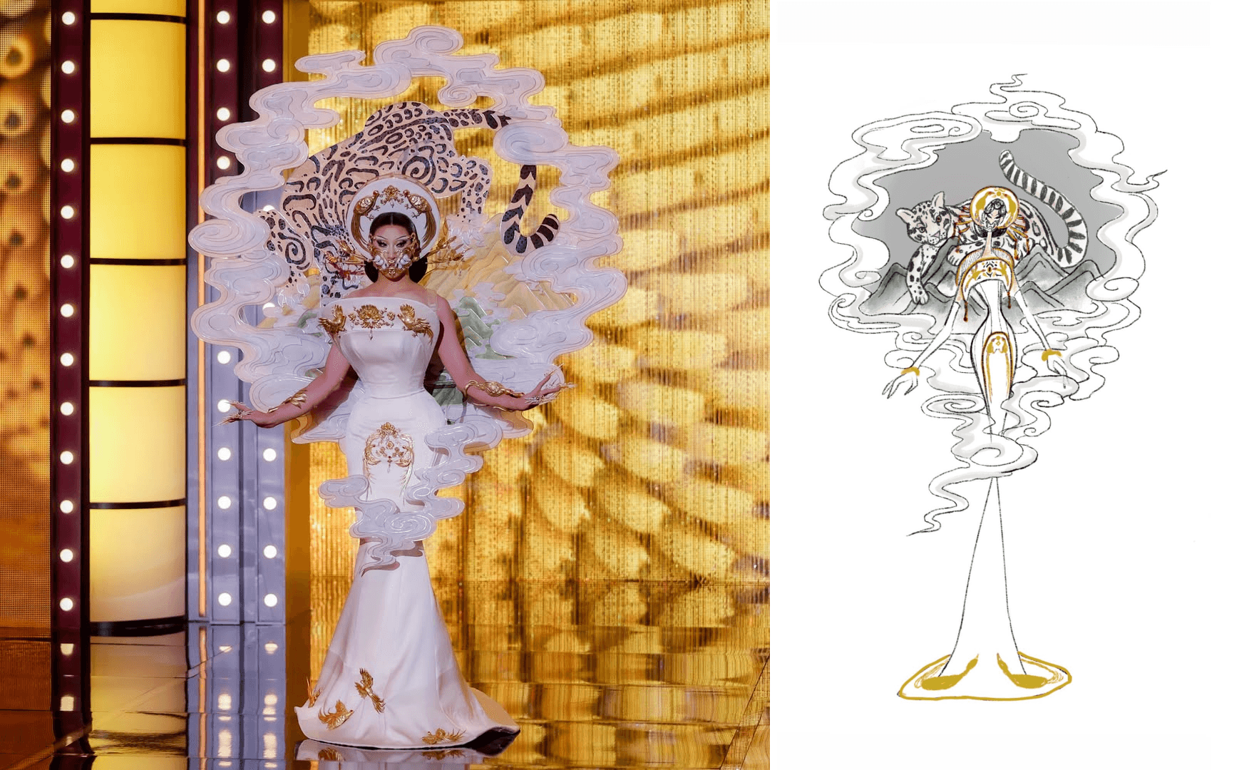 變裝皇后「妮妃雅」去年在美國知名實境節目《魯保羅變裝皇后秀》奪冠,近日重返舞台交接后冠。她身穿一襲素雅米白色禮服,打造雲霧繚繞的造型,並綴有雲豹、帝雉等台灣特有元素,就連前總統蔡英文也特別分享她的登場影片,喊話:「謝謝妮妃雅向世界介紹台灣。」