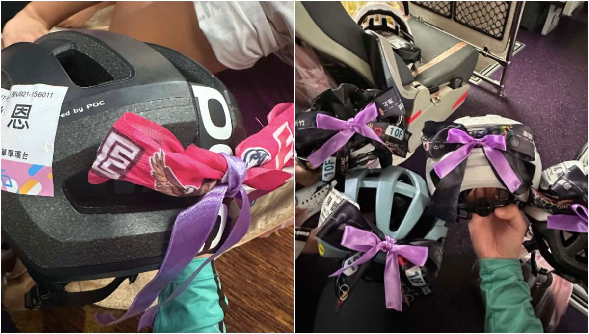賈永婕表示,今天收到兒子傳來的照片又紅了眼眶,「每一班的孩子都有屬於自己班級的緞帶,我們班是粉紅色,出事的班級是紫色」,昨天全部的學生決定都多綁上紫色緞帶,代表大家一起完成了環島。