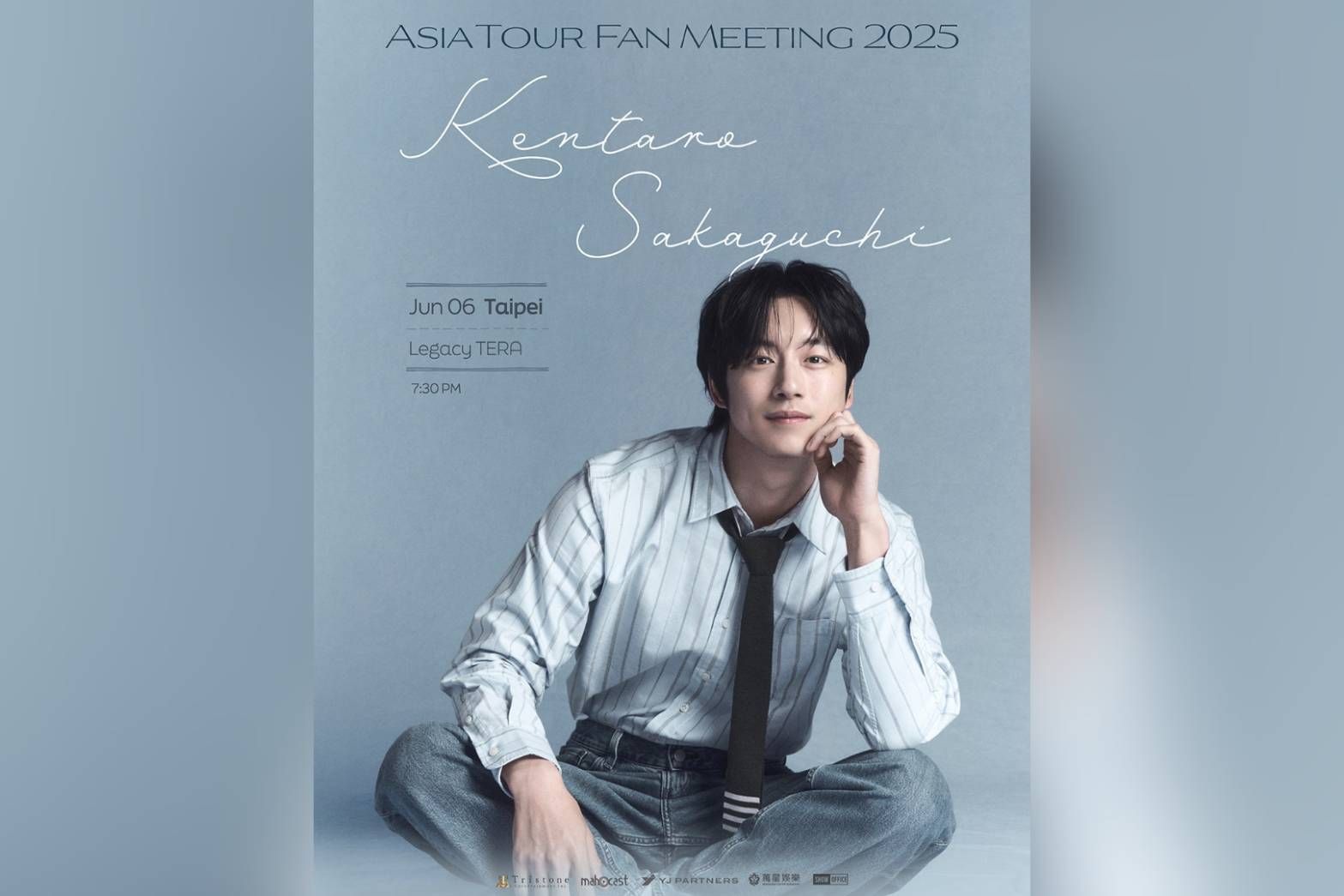 「KENTARO SAKAGUCHI ASIA TOUR FAN MEETING 2025 in Taipei」於6月6日在Legacy TERA舉行,門票自3,280元至5,680元不等(身心席2,080元),並祭出5種寵粉福利,購票粉絲全員可參與HI BYE歡送道別與坂口近距離互動,另有團體合照、簽名海報、官方海報、小卡等福利,相關訊息可參考SHOW Office臉書粉絲頁;門票於4日上午11點在Ticket Plus 遠大售票網站及全台 7-11 ibon 機台開賣。