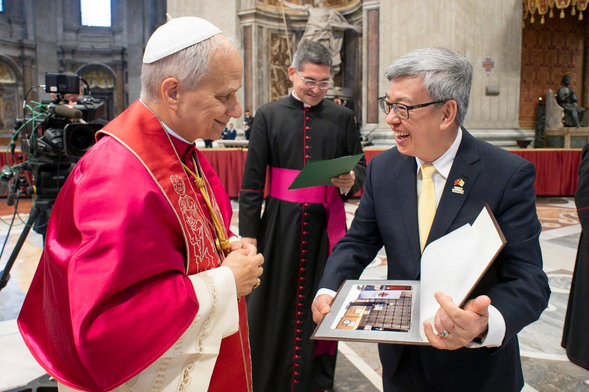 前副總統陳建仁以及外交部政務次長吳志中,代表台灣出席新任教宗良十四世(Pope Leo XIV)就職典禮,據教廷統計,超過150個慶賀代表團出席,期間陳建仁也與各國慶賀團代表握手致意,包含邦交國及美、日、歐洲等,共計與35位各國政府代表相談甚歡。
