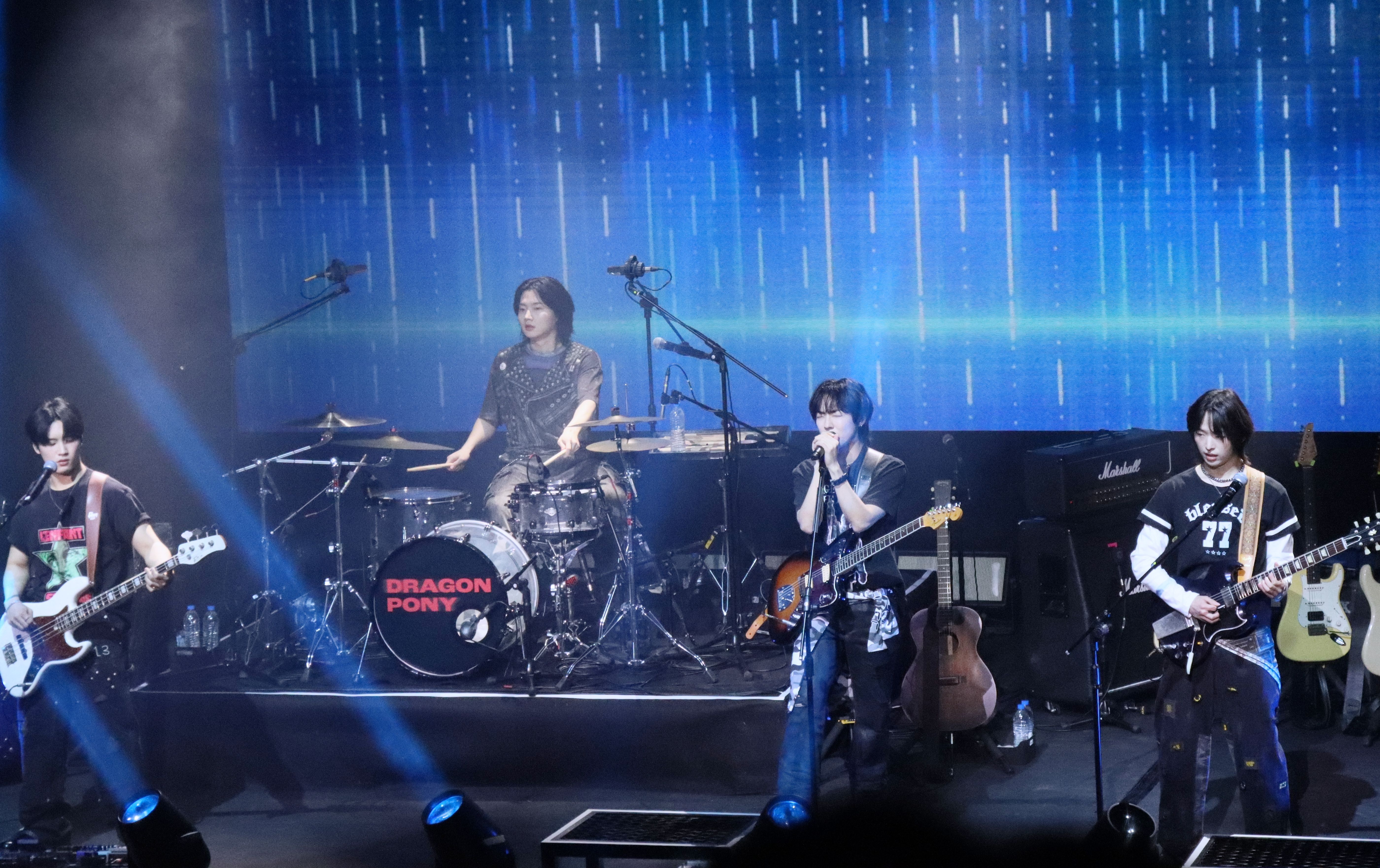 南韓新星樂團Dragon Pony是經紀公司Antenna推出的第一組樂團,團員由隊長兼主唱TaeGyu、貝斯手SungHyun、吉他手SeHyuk、鼓手GangHun組成,2024年9月正式出道,翻唱台灣樂團草東沒有派對的歌曲〈但〉,細膩嗓音收服眾多樂迷。他們23、24日連續兩天在SUB LIVE舉辦專場演唱會,2場活動完售共吸引1,600名粉絲到場支持。