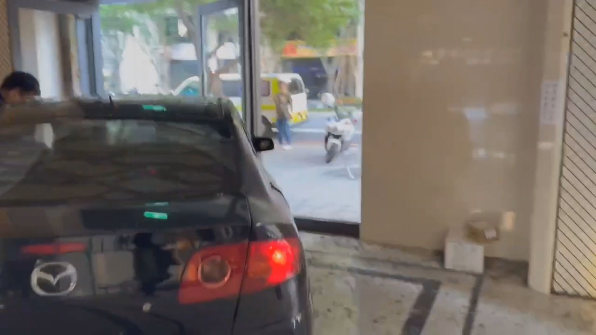 社區大廳監視器錄下,黑色轎車突然撞進來,大廳玻璃門碎了一地,裡面的桌椅、櫃台也全被撞壞,警察調查這名住戶是社區租客,他清晨喝完酒回家,發現警衛不在值班台,竟然就因此大怒,開車撞開社區一樓大門,而他車上當時還載著幼兒,撞門後抱著小朋友下車,在大廳內走了好幾圈,隨後還抱著小孩逃逸,一度藏身附近工地,最後被警方逮捕。