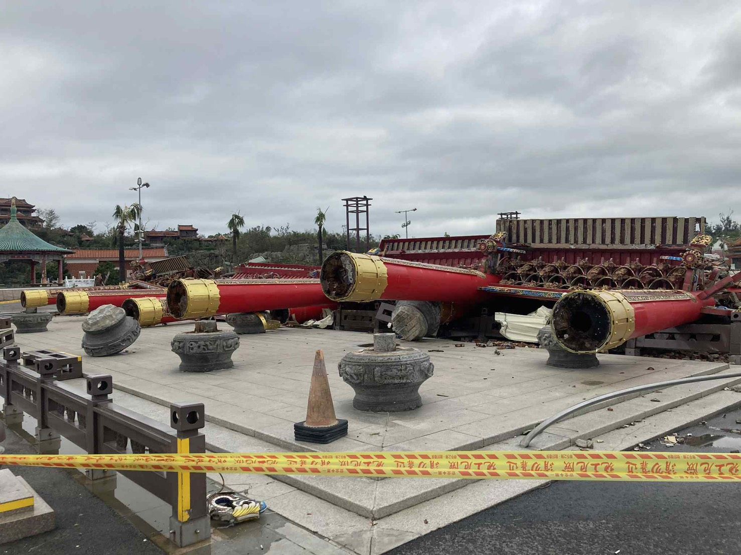 颱風丹娜絲襲台,南鯤鯓代天府的「五門式大牌樓」遭狂風吹倒。(翻攝自南鯤鯓代天府臉書)