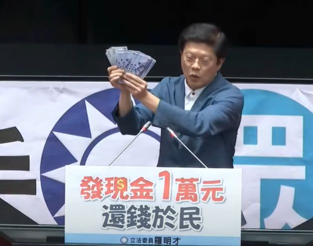 立法院今(11日)表決三讀通過國民黨版的「因應國際情勢強化經濟社會及民生國安韌性特別條例」,不納入台電的1000億撥補,明定每人普發現金1萬元,匡列特別預算經費上限為新台幣5450億元。藍營挾人數優勢強渡關山,羅明才等人表決前就已開心拿出鈔票在議場擺拍,準備宣傳政績,遭民進黨質疑是為了挽救大罷免頹勢,用「鈔」能力安撫民心,後續電價是否上漲、增加的2300億預算是否造成財政負擔,有待觀察。