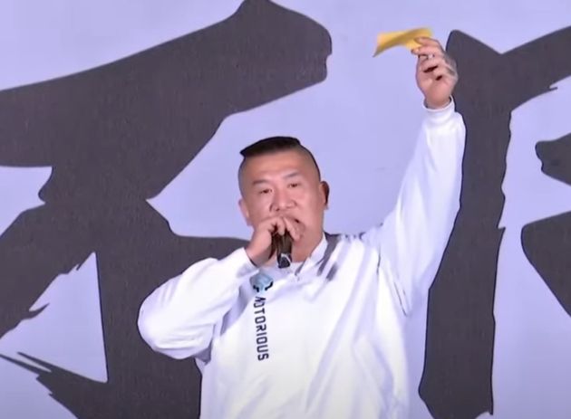 館長接著講到通膨問題,但話還沒講完就停下,疑似有反對者向他丟冥紙,他則說「別動他,別讓他受傷」,等到反對者離場之後,他撿起冥紙說,讓他們(民進黨)大罷免成功,以後只要不認同民進黨,膽敢罵民進黨,在街上就是這樣被丟冥紙,「台灣民主被你民進黨玩得這麼下賤」。