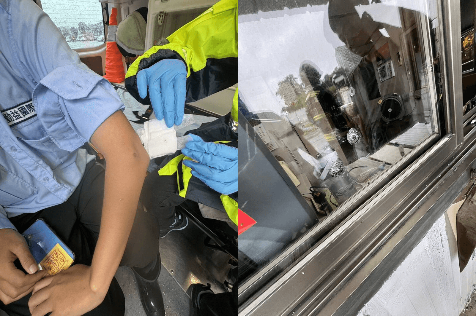 據了解,開槍男子駕車抵達拖吊場警衛室旁,朝值班警衛室開兩槍後迅速逃逸。現場遺留兩顆鋼珠彈,警衛室玻璃出現兩處彈孔,其中一發擊中值勤中的女性警衛手肘,造成她左手肘擦挫傷,有紅腫、瘀青的狀況,隨後由同仁送往中山醫學大學附設醫院就醫,所幸意識清楚,無生命危險。