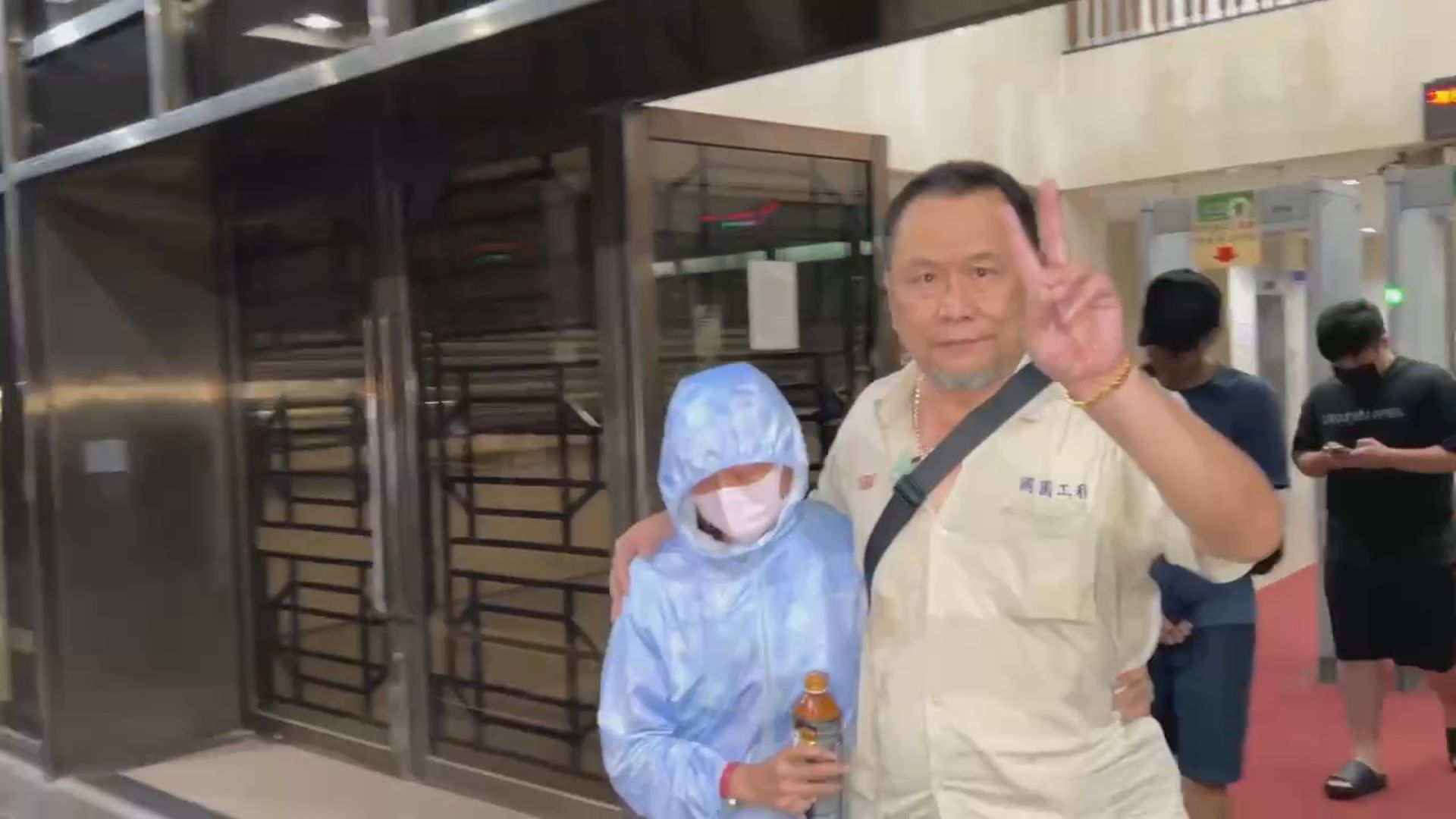 檢調7日發動搜索約談,帶回女會計以及她的丈夫跟兒子,訊後女會計50萬元交保,丈夫跟兒子則都請回,只是女會計交保離開時,一旁陪同她的丈夫見到記者採訪,竟對鏡頭比出一個勝利手勢。