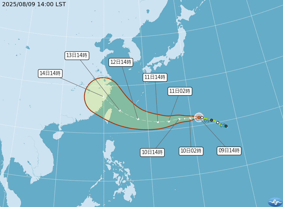 中央氣象署最新預測,輕颱「楊柳」路徑由原先巴士海峽北上修正為通過台灣東北海域,與台灣距離更近。若路徑再偏南接近,降雨將更顯著,氣象署預估最快下週二(12日)上午或白天發布海上颱風警報,週三、週四(13、14日)為颱風最接近台灣時間。