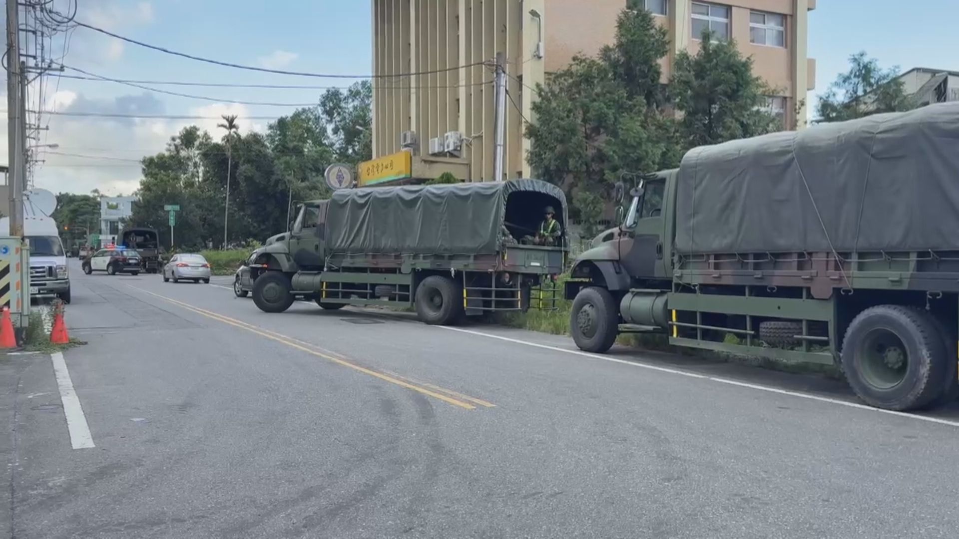 記者李依庭:「現在花蓮的天氣沒有風也沒有下雨,但是天色已經開始有一點陰,上方也有一些雲層出現。由於因應這個颱風的關係,其實啊住在比較山區的居民就會比較受到影響,尤其是在這個馬太鞍堰塞湖,擔心說下游有一些地方有可能會有潰堤的風險,因此包括像是光復鄉等等是要預防性並且強制的先撤離七個村里的居民,也請來了軍方來幫忙。」
