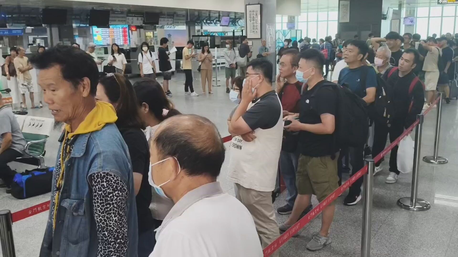 民眾幾乎徹夜未眠,起了個大早,就是希望能盡快返回台灣本島。除了擔心工作受到影響,也有人是慢性病的藥物已經吃完。民眾:「心臟病的藥吃完了,死掉怎麼辦啊。沒有派軍機專機。對啊,軍機我錢花下去沒關係嘛。我們花錢嘛。」