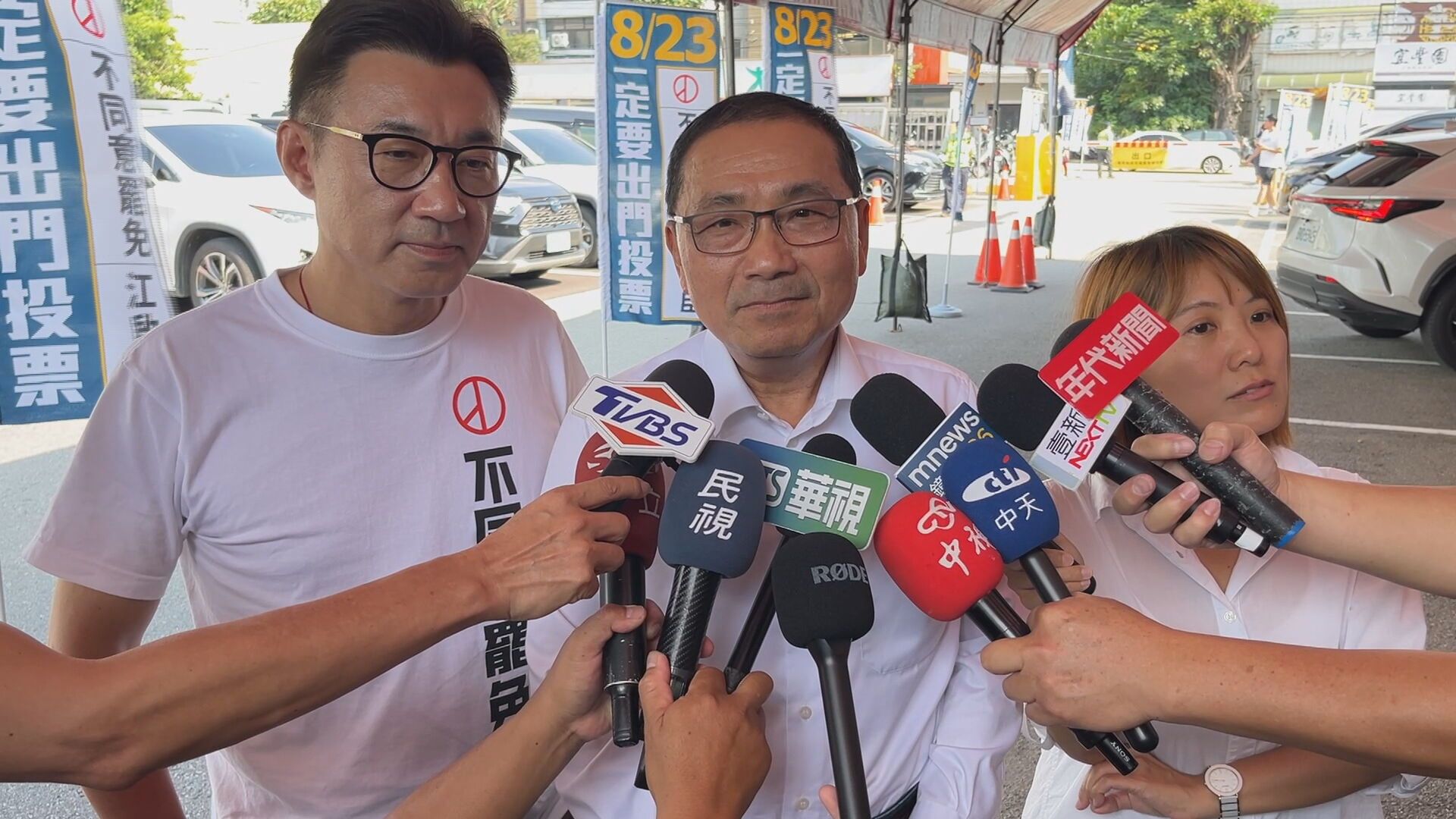 823罷免投票前的最後一個決戰黃金週末,台中第八選區立委江啟臣舉行造勢活動,國民黨大咖「禿子、漢子、燕子」全到齊,另外民眾黨主席黃國昌也現身力挺。