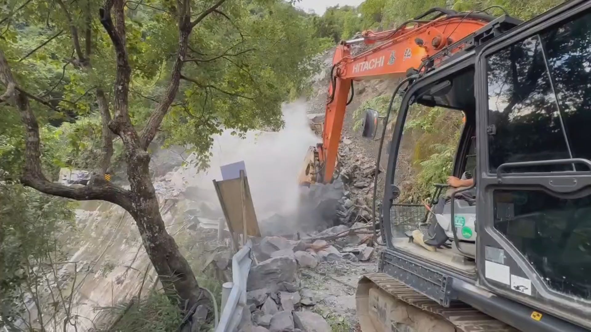 可以看到坍方地點現場有一顆巨大落石,現場也有大規模的土石崩塌,復興工務段廠商機具全力搶通中,由於大型落石必須進行破碎,現場需要實施疏導管制,呼籲請用路人,非必要請勿前往。
