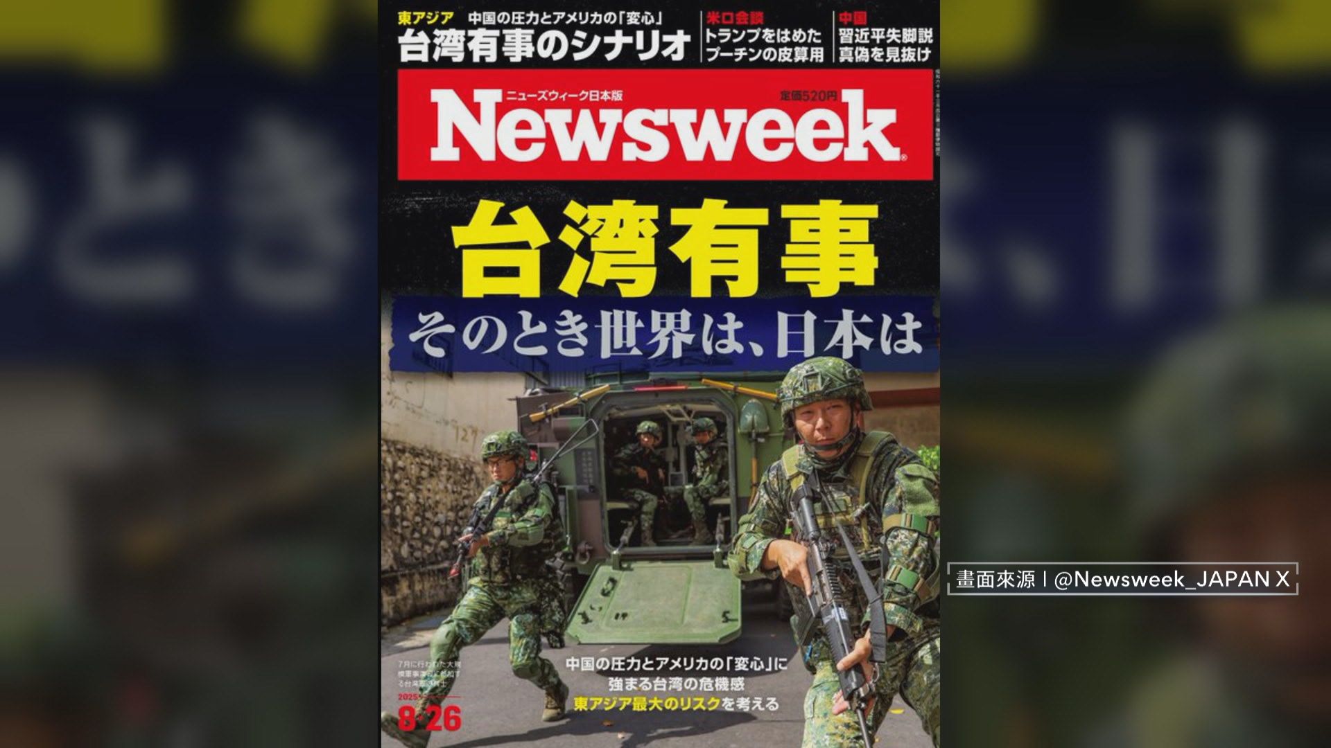 《新聞週刊》日本版最新一期,以「台灣有事」特輯作為封面標題。內文分析,台灣如何對抗中國進犯的野心,正在加速「豪豬化」,也就是將台灣打造成「滿是自我防衛尖刺的豪豬」。