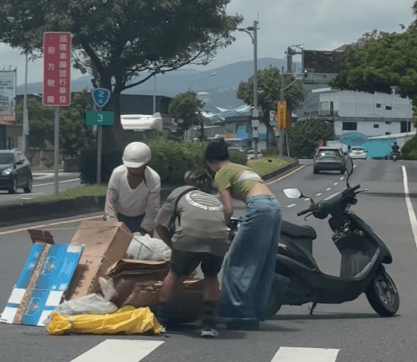 藍波老師和老婆育有2女,20日他透過社群表示,開車在宜蘭礁溪往二城方向時,看到前方有一名撿拾回收物的阿伯摔倒,從藍波老師PO出的影片顯示,阿伯機車橫躺在馬路中間,幾乎占去一線道,來往車輛不乏卡車等大車,相當危險。