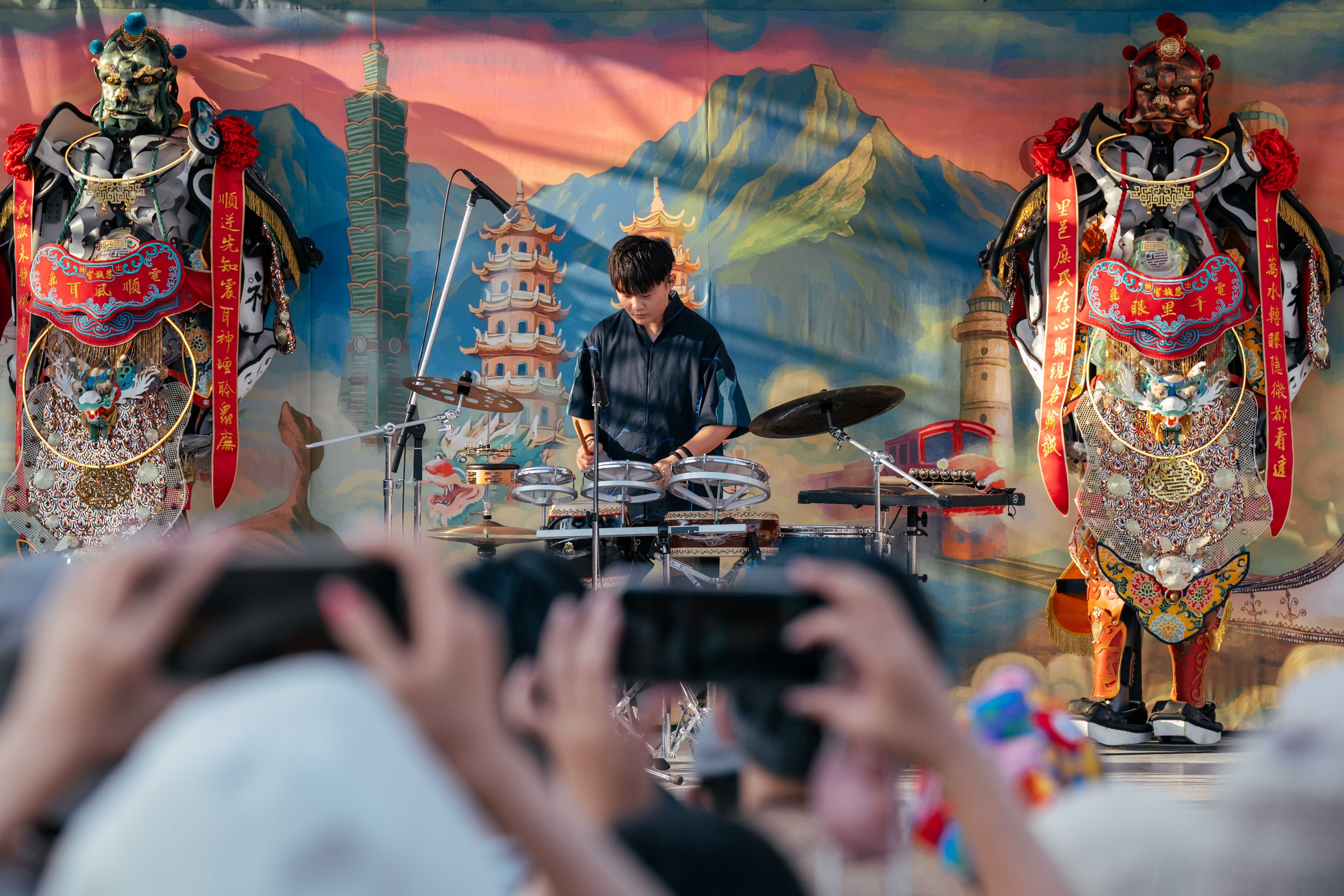 文化部昨(28日)表示,經過多次交涉後,最後由團隊將「千里眼」與「順風耳」靜態展示方式,自然立於背板前,9組演出團隊雖對此感到遺憾,但是包含希望兒童合唱團孩子們都以更堅毅及勇敢歌聲,唱出台灣聲音,不二擊聲音製造所音樂總監薛詠之指出,雖然電器神將沒有辦法一起互動演出,「但是我會更用力地把他們的份打進去」。