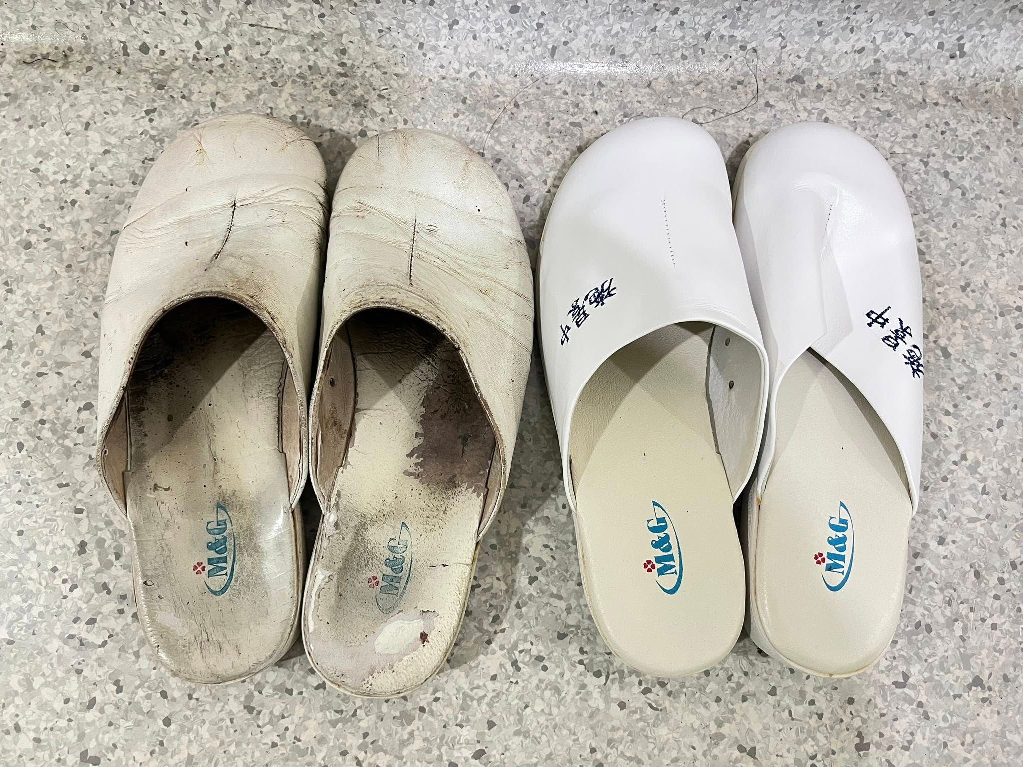 施景中醫師昨透過臉書發文指出,聽聞過去時代,外科醫師在手術房只穿木屐,是為了避免腳踩電刀踏板時漏電被電到,而他自己則是自擔任主治醫師後,都在開刀房穿專用白鞋,至今已27年,這雙鞋已陪他走過無數戰役,「沾滿累積了不少孕婦流下的血」。