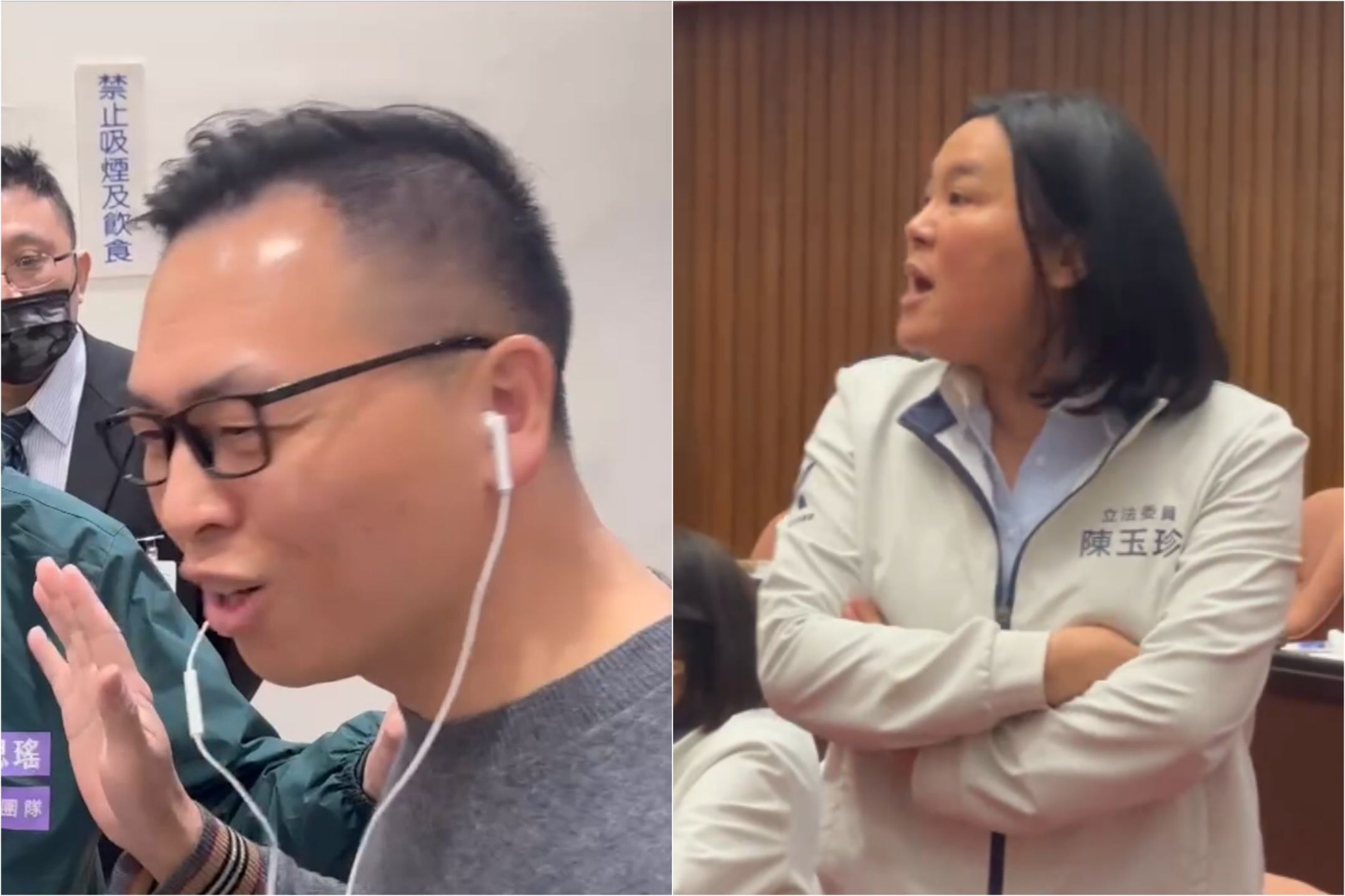 陳玉珍(右圖)護航游智彬(左圖)亂入立院,一席宣稱:「他是我助理。」(翻攝自郭昱晴Threads)