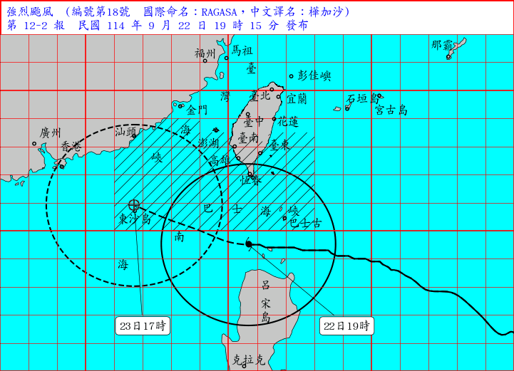 強颱樺加沙來襲,其暴風圈已觸陸,高雄市政府宣佈那瑪夏、桃源、甲仙、六龜,以及茂林5個行政區明(23日)停班停課,其他行政區正常上班、正常上課;屏東縣枋山鄉、車城鄉、恆春鎮、滿州鄉、霧台鄉、三地門鄉、瑪家鄉、來義鄉、泰武鄉、春日鄉、獅子鄉、牡丹鄉等12鄉鎮也停止上班、停止上課,其他地區正常上班上課;台東、花蓮則停班課。