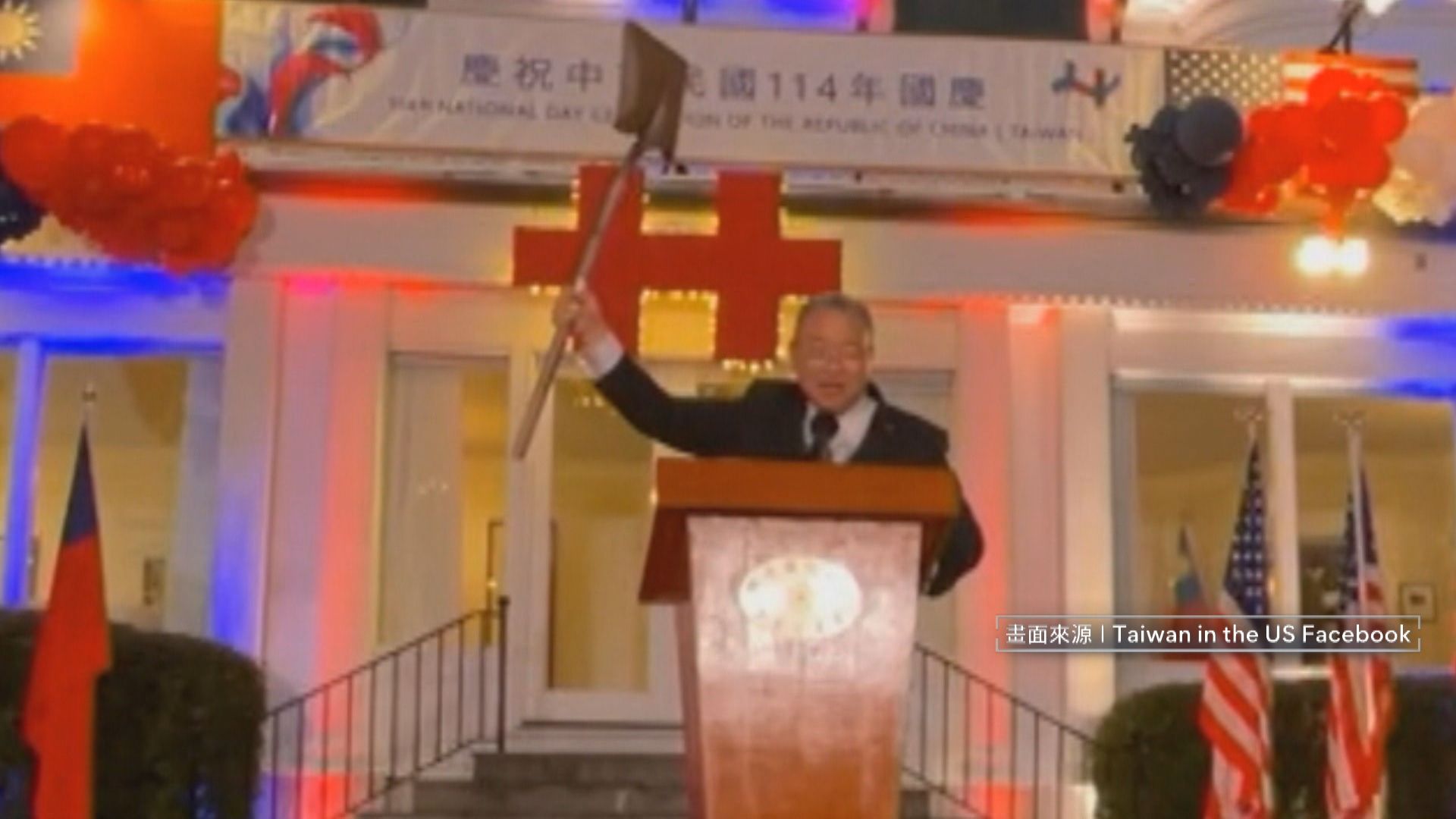 雙十國慶即將到來,我國駐外使館陸續舉辦慶祝活動,駐美大使俞大㵢美東時間8號晚間在雙橡園舉辦的雙十酒會上,就特地高舉一把鏟子,感謝投入救災的志工,在美國的賓客前展現台灣的韌性。