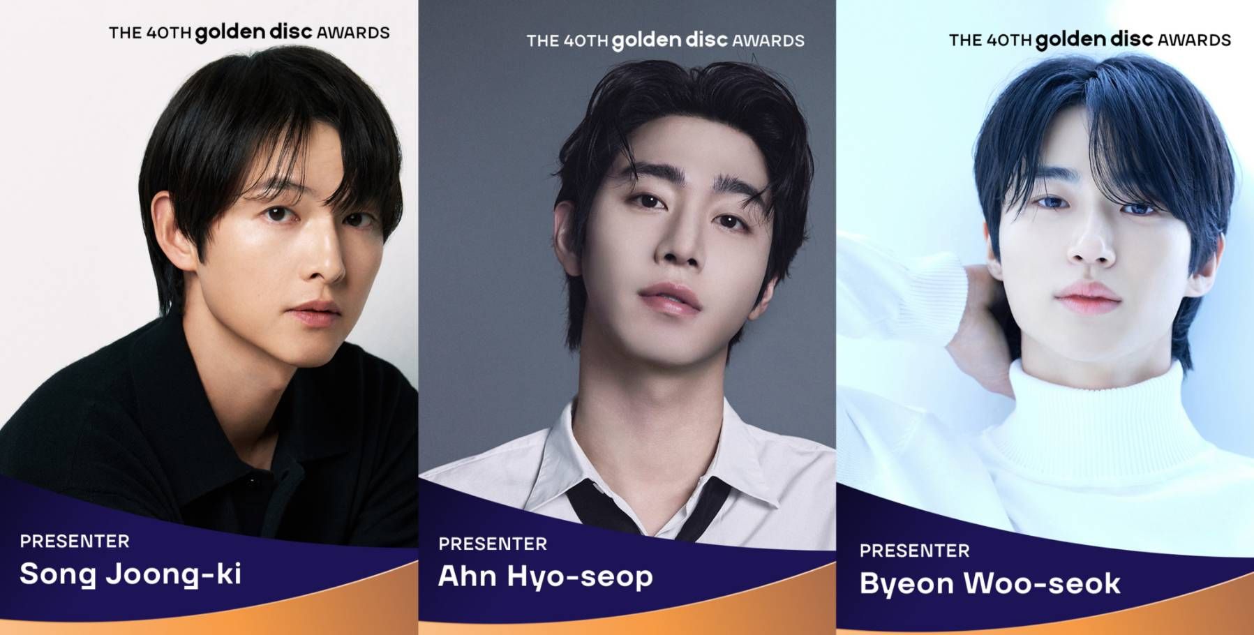 韓流三大人氣男神即將同台!宋仲基、邊佑錫、安孝燮確定將以頒獎嘉賓身分登上「第40屆金唱片頒獎典禮(Golden Disc Awards)」舞台,為這場代表K-POP榮耀的音樂盛事增添星光。主辦單位HLL、超級圓頂於20日正式宣布,典禮將於2026年1月10日在臺北大巨蛋盛大舉行,三位橫跨戲劇與電影圈的頂級演員,將與今年最受歡迎的K-POP歌手們共創象徵K-Content全球影響力的華麗舞台。